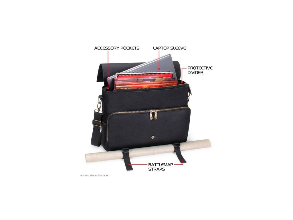 VYslepte stolní hráčskou základní tašku RPG - Vyrobena s popruhy pro cestování s bojovou mapou, vypolstrovanou obálku na notebook, těžkoodolné kovové svorky a zipy. Design ve stylu poslíčkovské tašky nabízí neuvěřitelnou univerzálnost a pohodlí. Interiér má tlustou polstrovanou přepážku pro organizaci vybavení postavy a zahrnuje dostatek prostoru pro až 4 pravidelné knihy nebo kombinaci složek, deníků, folií a dalších. Existuje speciální oddělení s elastickým bezpečnostním popruhem navrženým tak, aby držel notebooky a tablety až do 17'' v bezpečí při cestování. Velmi prostorná přední kapsa na zip s další sítovanou kapsou na zip uvnitř je skvělá pro skladování a organizaci hřištních materiálových kostek, deníků, tokenů, per, tužek, a mnohem více. Taška RPG Essential's má dvě přední bojové popruhy pro skladování, ideální pro cestování s srolovaným bojovým mřížkou nebo mapou. Popruhy lze upravit tak, aby držely mapy až do průměru 3 palce. Přijďte na svou další seanci s pořádkem ve svém vybavení a veďte svou další výpravu s hráčským základním cestovním pytle ENHANCE RPG.Rozměry vnější: 18 x 13 x 4,5 palceRozměry interiéru: 15 x 12 x 4 palceObálka na notebook: vejde se až na 17 palcové notebooky.