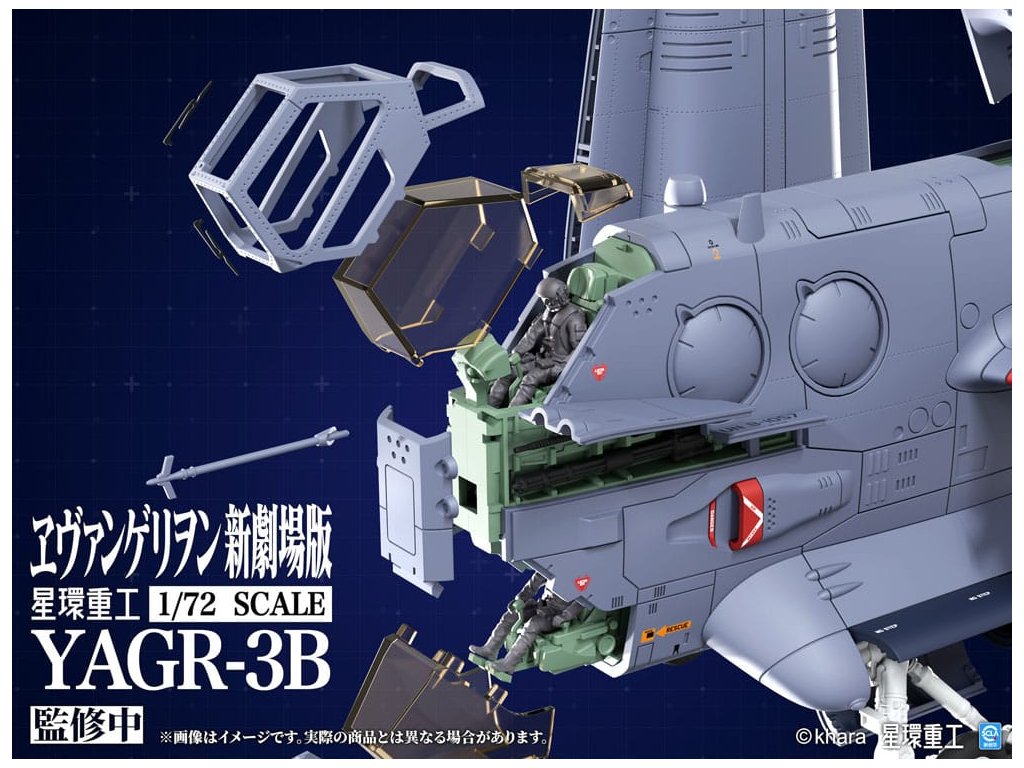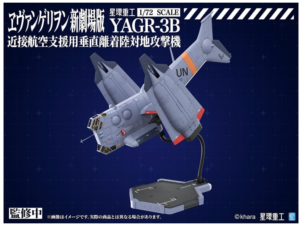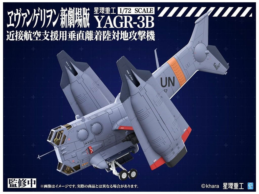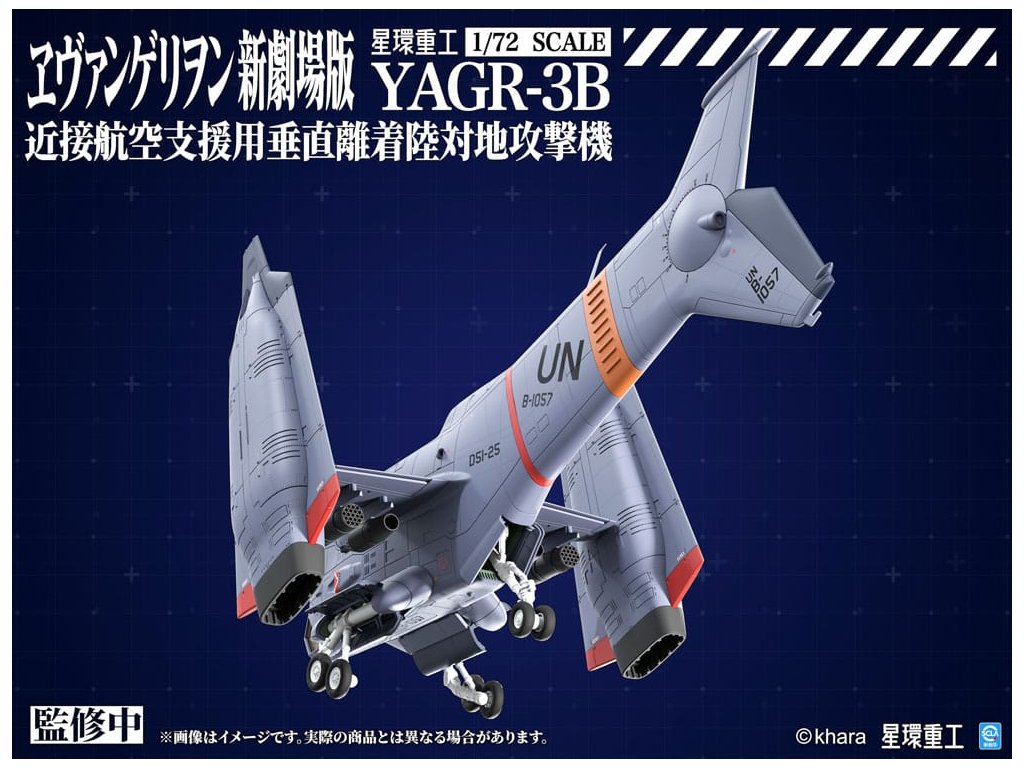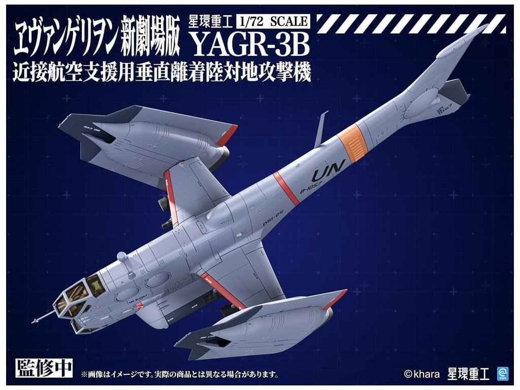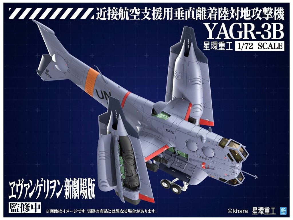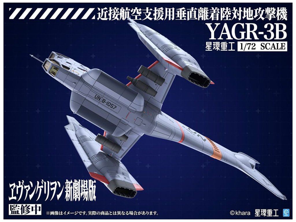 PLANET-RING představuje letoun blízké vzdušné podpory VTOL YAGR-3B UNAF, který se objevuje v EVANGELION:3.0+1.0 THRICE UPON A TIME, jako plastický modelový kit v měřítku 1/72. Tým při vývoji modelu se inspiroval různými designy YAGR-3B, které se objevují v celém filmu, a dále vylepšil a rozšířil jak jeho vnější, tak i vnitřní design, aby letoun vypadal realističtěji. Konečný model je věrný duchu původního designu a přináší model se smyslem pro realitu. K dispozici je jak plastický kit, který nevyžaduje barvu ani lepidlo, tak předem sestavená a předem natřená verze z kovové slitiny. Plastová verze také zahrnují nálepky a aplikační dekály, které modelářům dávají svobodu v úpravě vzhledu letounu. Součástí jsou také volitelné díly pro pokročilé stavitele, jako jsou leštěné kovové ploutve a vysoce přesný pilot z UV vytvrzené pryskyřice, což výrazně zvyšuje detail modelu. Orientační datum vydání: prosinec 2026