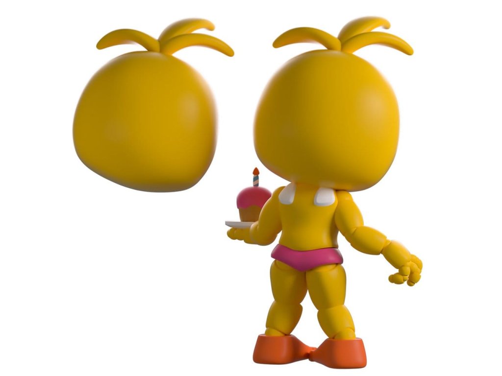 "Počkej... Kde je můj zobák?" Chica je natolik nadšená ze svého návratu k Youtooz, že ztratila zobák! Ano, můžete se rozhodnout, jak přesně chcete Chica zobrazit, protože k ní dostanete dvě výměnné hlavy! Jedna s jasně modrými očima nad oranžovým zobákem a kulatými růžovými tvářemi, z nichž trojice per se tyčí z vrcholu hlavy, zatímco druhá ukazuje její oči a zobák, přičemž dovnitř jsou vidět bělavé zorničky vykukující z ubíhajících očních dírek a děsivého zubatého úsměvu. Ať už si vyberete jakoukoli hlavu, bude stát 11,6 cm vysoká s pokrčenými koleny a segmentovou rukou vycházející z jejího žlutého těla, přičemž v levé ruce drží růžovou ozdobenou muffinu a nosí cedulku 'Pojďme na párty!'. Vnější obal balení ukazuje Chica připravující se na párty se svou muffinou, zatímco interiér se dívá do tmavé místnosti s kabinetem podlahou, kde jsou staré monitory naskládané na pozadí. Ochranný obal je pak pokrytý svislými modrými a černými proužky s tlustými dráty visícími z vrchu a jejich figurka je vidět přes velké průhledné okno v přední části balení. Tento sběratelský předmět je zasílán v matném, reliéfním, ochranném vnějším obalu a plastové ochraně přizpůsobené velikosti pro maximální ochranu během přepravy.O Five Nights At Freddy's:Five Nights at Freddy's je hororová hra o přežití, kterou vytvořil Scott Cawthon. Hra je nastavena tak, že hráč pracuje jako noční hlídač v rodinné pizzerii Freddy Fazbear's, kde se rychle dostane do sporu s řadou citlivých animatronik. Krátce po vydání hry v roce 2014 získala kultovní následovníky a rychle se vyvinula do složitého fiktivního vesmíru s vlastními příběhy a různými spin-offy. Orientační datum vydání: červen 2026