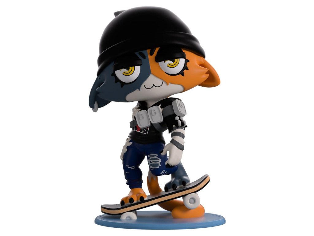 "Buď kocouřile cool"Hledáš nejchladnějšího parťáka do dua? Protože Meow Skulls to bere opravdu vážně se svým debutem u Youtooz! Postaví se na vrchol svého skateboardu, který je podložený konec jejího dlouhého oranžově zbarveného ocasu, vysoká 13 cm. Pod tou tmavou, z poloviny se zavřenýma očima je záludný úsměv na její modrooranžové kocouří tváři a černá čepice jí klopí uši dolů. Oblečená do šedobíle pruhovaného trička pod černou mikinou s přetrhanými rukávy, rybí kosti visí z jejího hrudníku a boku jako řetězy a postroj s plechovkami jí obepíná trup, na sobě má roztrhané modré džíny. Na vnějším balení je vidět, jak hraje na modrou kytaru před duhou tornáda, zatímco vnitřek je pokrytý fialovým až růžovým gradientem. Bílá čára pak proletí fialovým ochranným obalem, když je její figura vidět skrze velké, průhledné okénko na přední straně balení. Tento sběratelský kus se dodává v matném, reliéfním, ochranném vnějším obalu a plastové ochraně přesně podle velikosti pro maximální ochranu během přepravy.O hře Fortnite:Fortnite je online videohra, kterou vyvinulo a vydalo Epic Games. S několika různými herními módy, kde hráči bojují o to, aby byli poslední v postavení, spolupracují s přáteli na obraně cílů nebo vytvářejí vlastní arény, jeho časté aktualizace, divoké dějové linie a herní akce vedly k tomu, že se stal naprosto kulturním fenoménem!