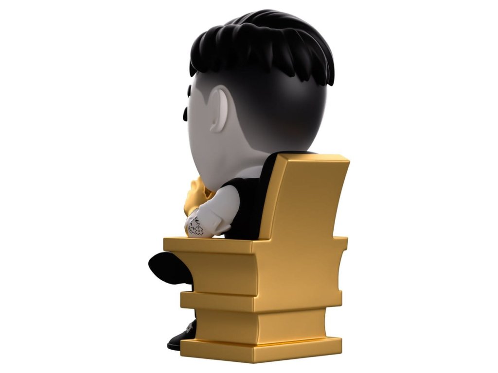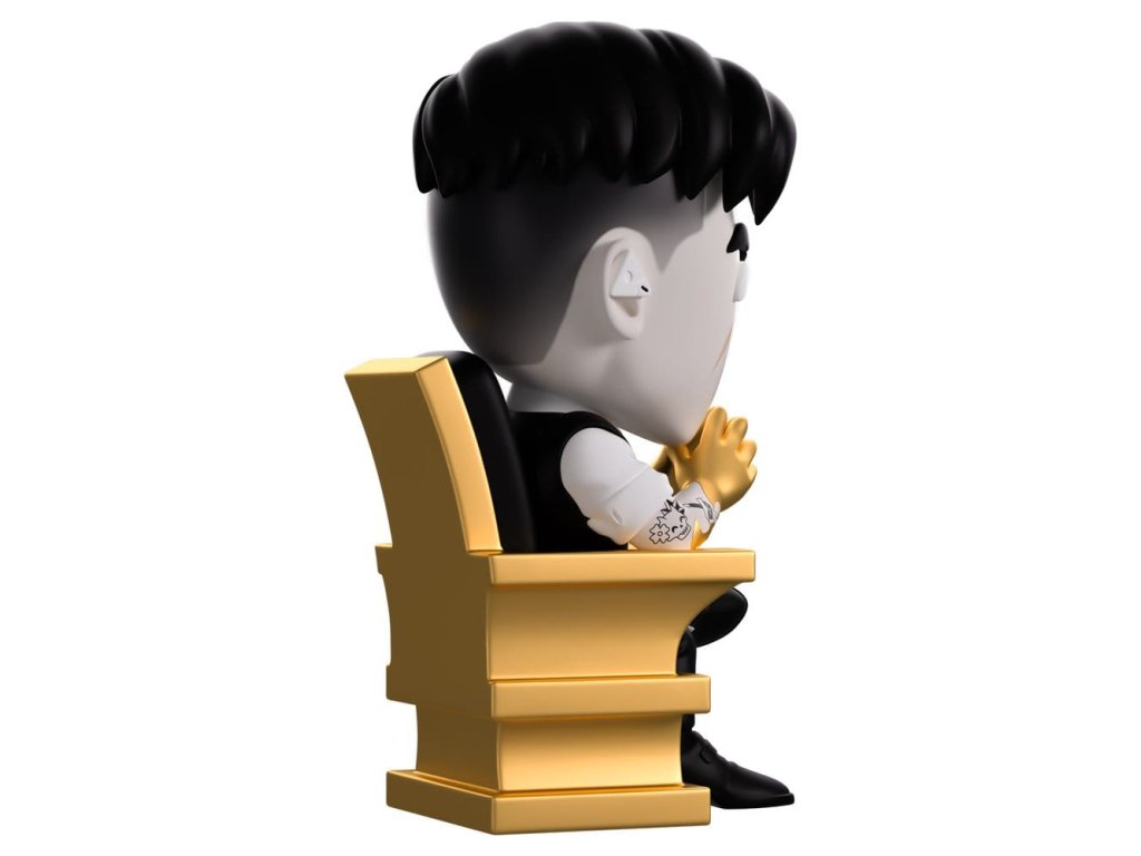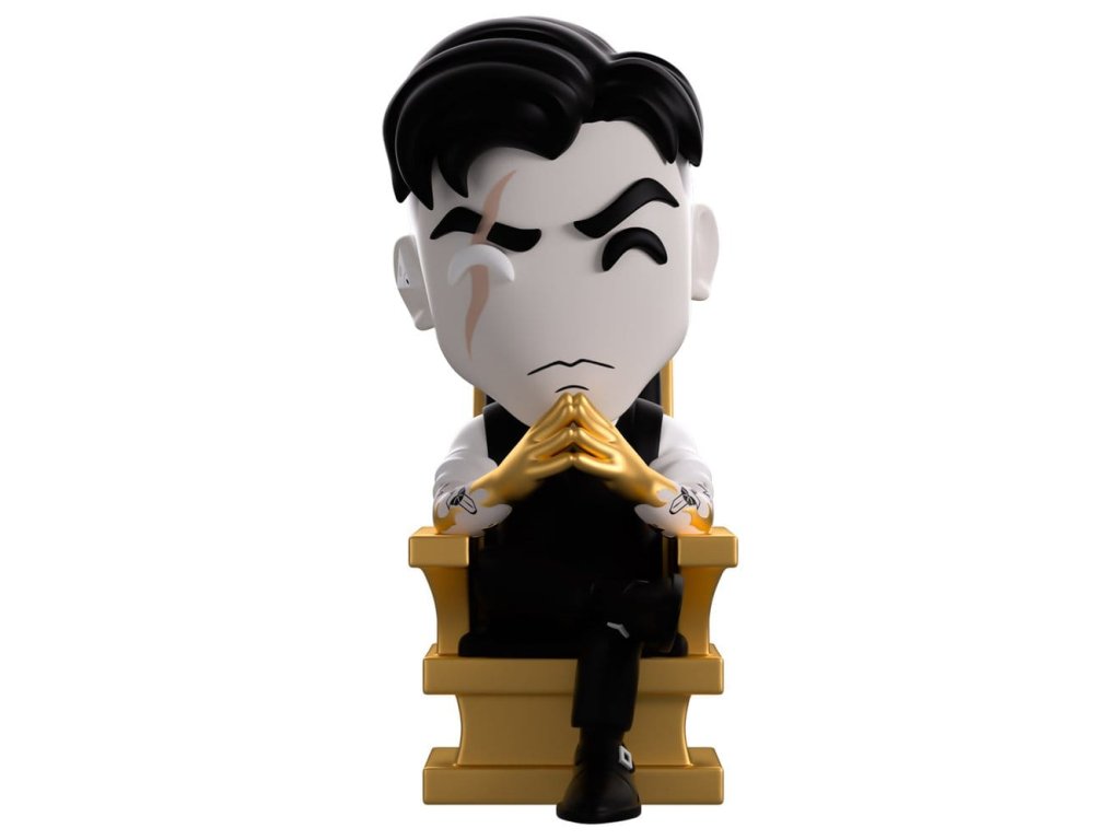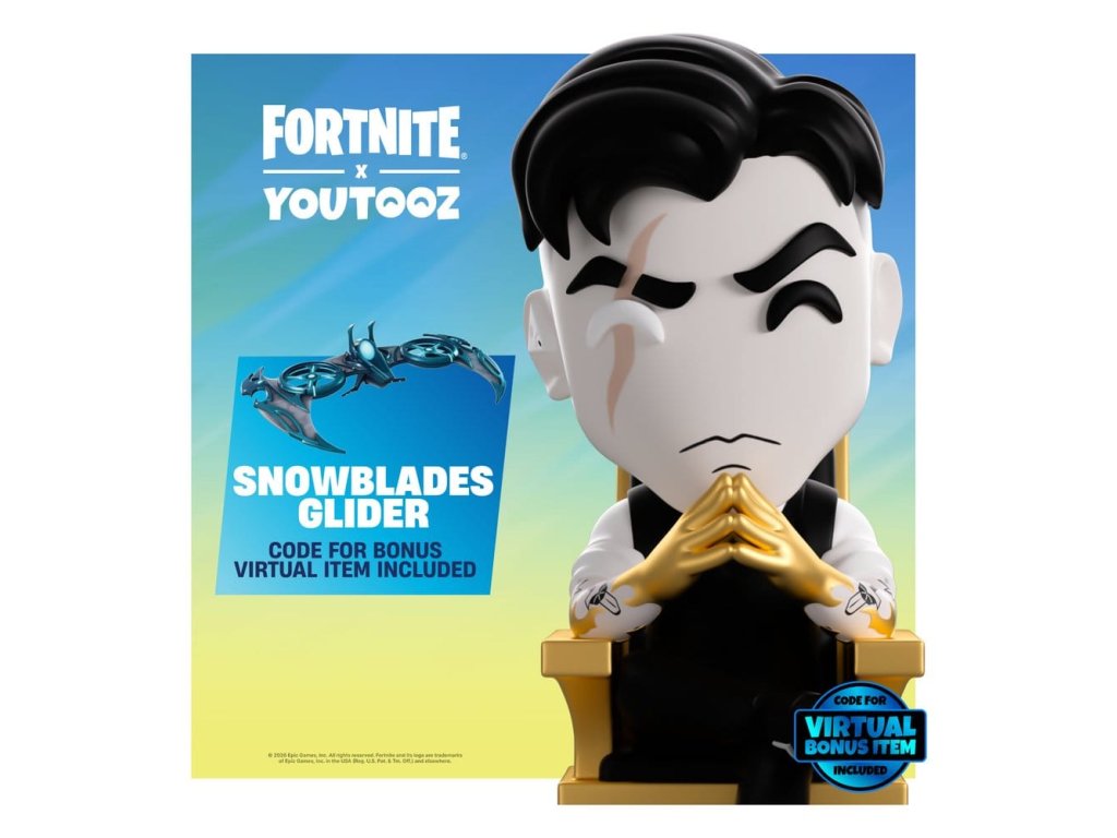 "Vše, co září, je tvé" Midas vaří nový plán a začíná svým debutem na Youtooz! Sedí na zlatém trůnu ve výšce 4,1 palce se svou pravou nohou překříženou přes levou a spojuje špičky prstů vpředu, zatímco jeho ruce jsou pokryté hlubokým zlatem, které se táhne na jeho tetované paže. S jeho černými vlasy sčesanými na stranu a jizvou protínající bílé pravé oko jeho strohé tváře má na sobě bílou košili s ohrnutými rukávy pod černou vestou a stejně barevné kalhoty vedou k elegantním špičatým botám. Exteriér jeho obalu ho zobrazuje, jak sedí na konci šedého stolu, zatímco interiér je pokryt oranžovým a žlutým gradientem. Bílá čára pak přejde přes žlutý a růžový ochranný obal, zatímco jejich figura je vidět skrze velké, průhledné okno na přední straně obalu. Tento sběratelský předmět je dodáván v matném, raženém, ochranném vnějším obalu a v plastové ochraně přesně dané velikosti pro maximální ochranu během dopravy. O hře Fortnite: Fortnite je online videohra vyvinutá a vydávaná společností Epic Games. S několika různými herními módy, které mají hráče bojovat, aby byli posledním stojícím, spolupracovat s přáteli na obraně cílů nebo vytvářet vlastní arény, její časté aktualizace, divoké příběhy a herní události ji učinily absolutní kulturní fenomén.
