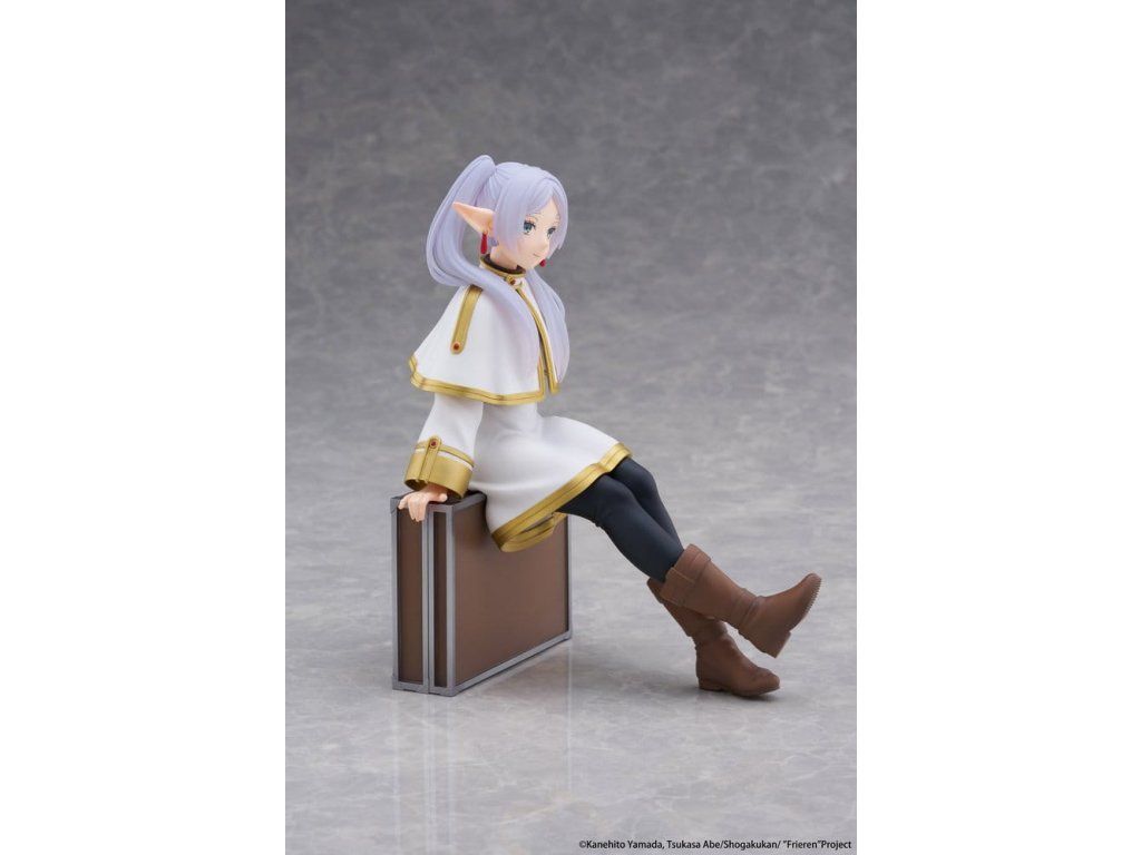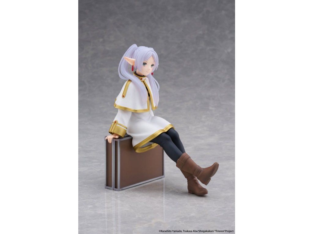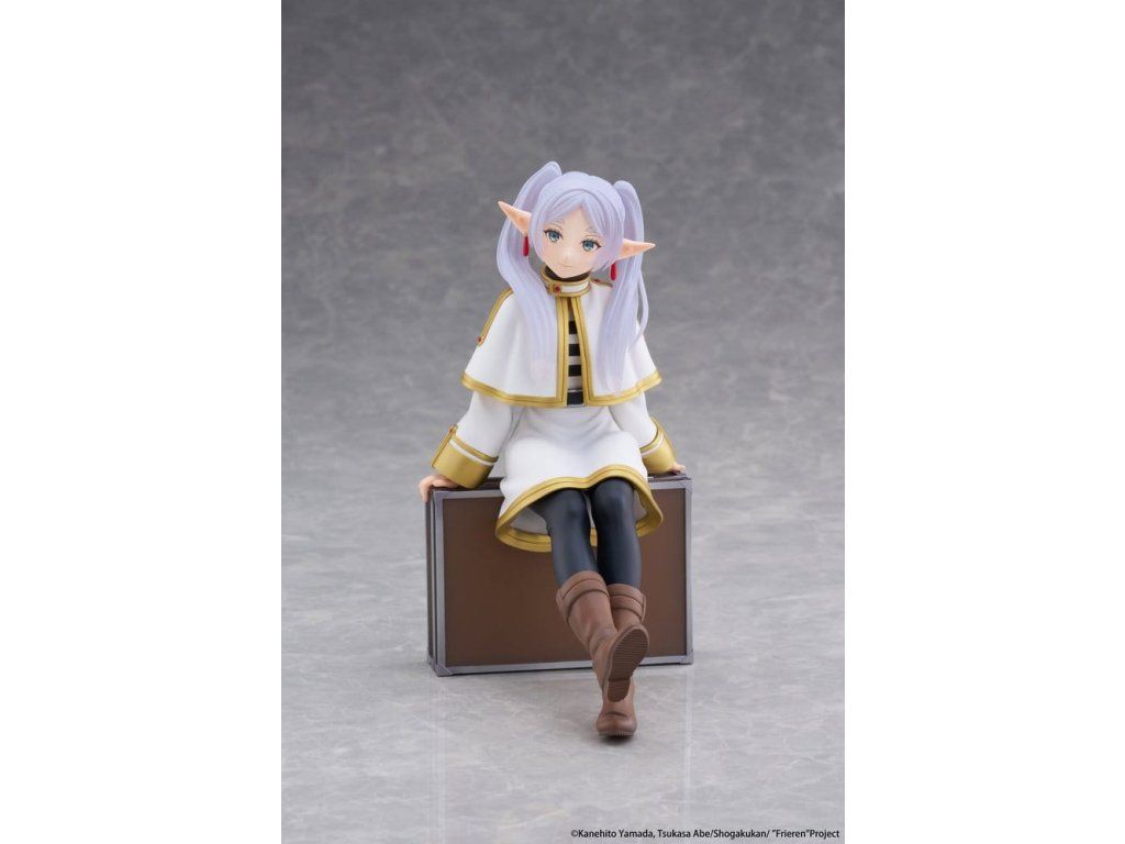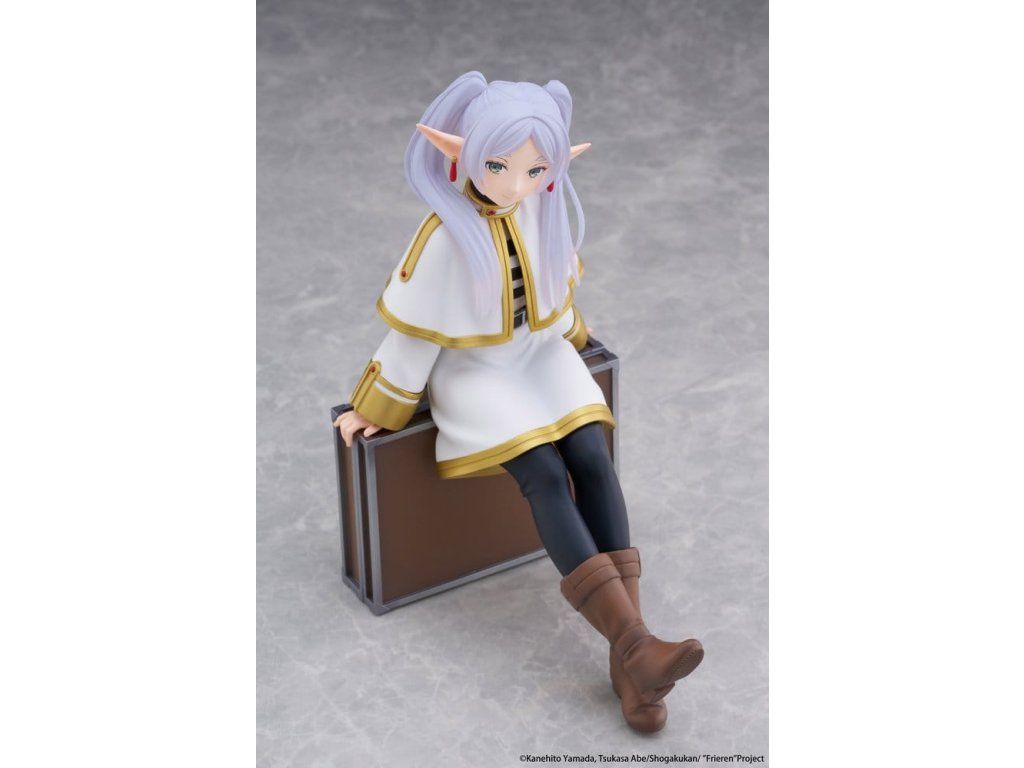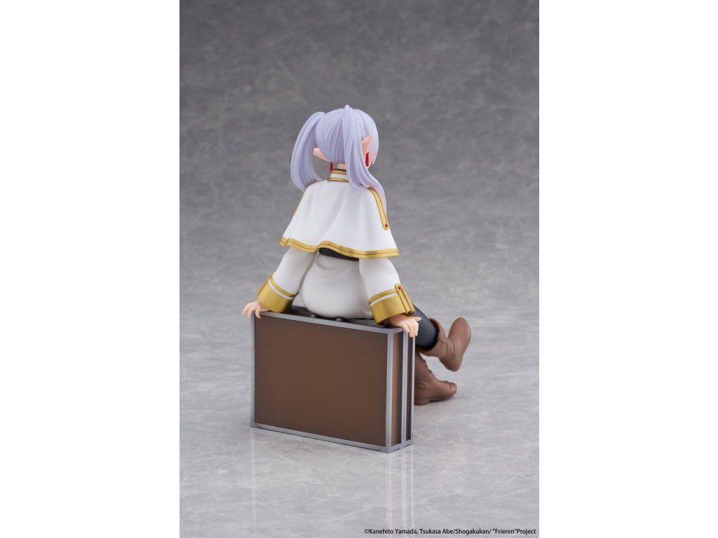 Toto je stolní PVC figurka od společnosti Taito z licence Frieren: Za koncem cesty. Zobrazuje postavu Frieren v provedení verze Trunk Case (reedice) a měří přibližně 13 cm.