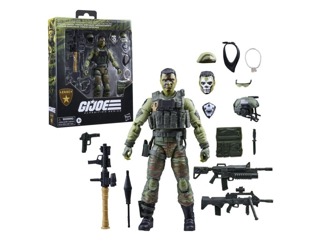G.I. Joe debutoval v roce 1964 s původní akční figurkou, která zanechala nesmazatelný dojem na generace a odstartovala hračkářskou franšízu, která dodnes prosperuje a získává nové fanoušky. G.I. Joe Classified Series Legacy Collection pokračuje v této tradici tím, že oslavuje a oceňuje každodenní hrdiny, jako jsou vojáci a záchranáři, kteří čelí nebezpečí, aby zachraňovali životy, chránili naše komunity a snažili se učinit svět lepším. Novinkou v řadě G.I. Joe Classified Series Legacy Collection je Akční voják – Speciální jednotky, který je připraven na dobrodružství a disponuje více klouby pro široké možnosti pózování. Tato figurka speciálních jednotek je vybavena 16 kusy příslušenství inspirovaného postavou, včetně náhradní hlavy, beretu, brýlí, masky, šátku, identifikačních známek, batohu, helmy, nože, RPG a dalších zbraňových doplňků. Akční voják – Speciální jednotky představuje odvahu, integritu a vytrvalost při podpoře celého spektra vojenských operací.