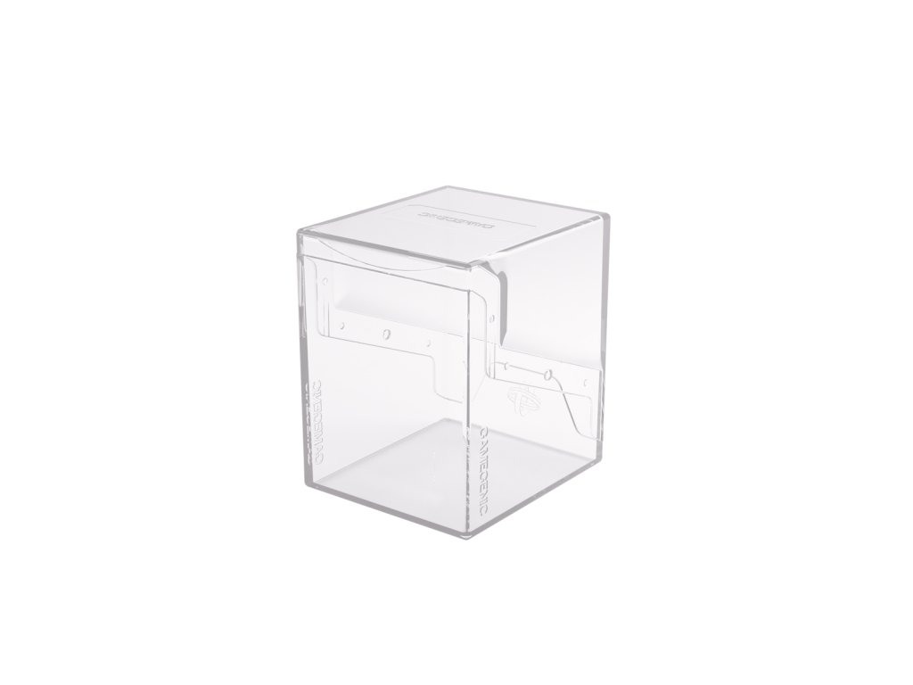 Kompaktní a odolná krabička na karty, která pojme více než 100 karet v dvojobalech. Díky průhlednému materiálu a chytrému uzavírání je vrchní karta plně viditelná zvenčí bez nutnosti otevírání krabičky. Krabička je k dispozici v 10 různých barvách, včetně exkluzivní černé/průhledné verze.• Kapacita více než 100 karet.