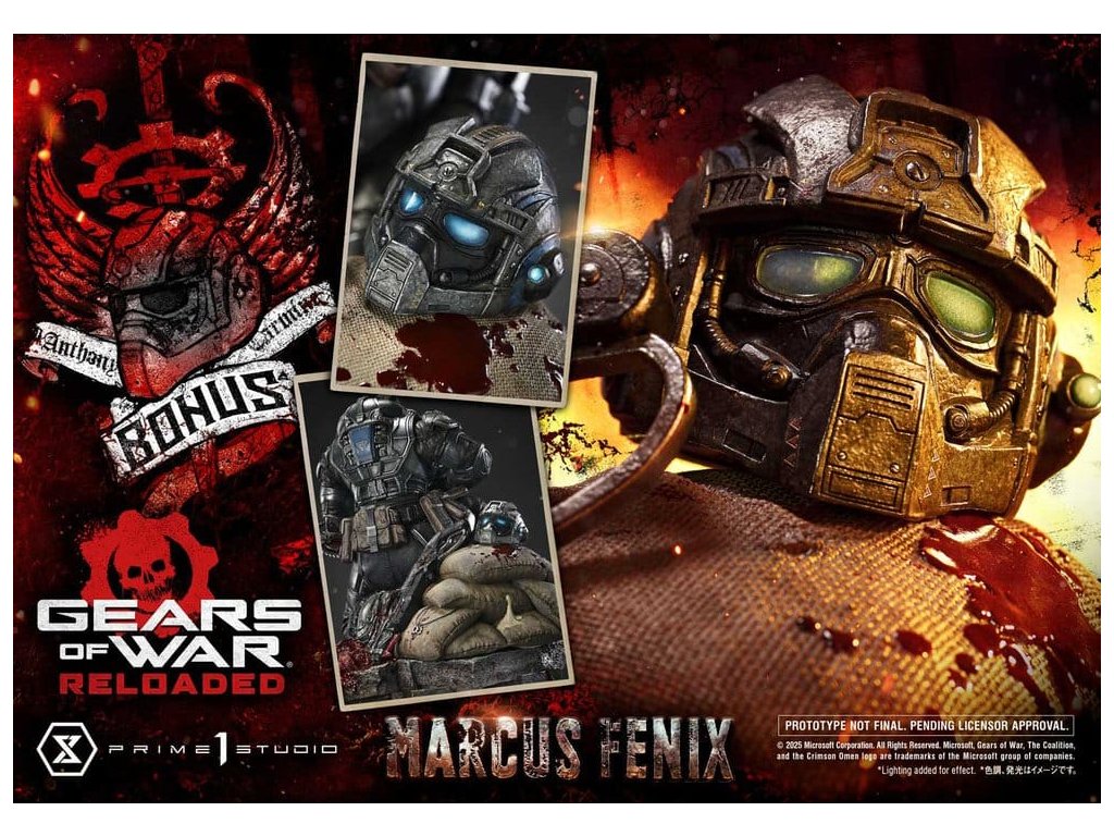 "Zdá se mi, že potřebuješ veškerou pomoc, kterou můžeš získat."Uprostřed bojiště pokrytého krví se v měřítku 1/3 objevuje legendární Gear. Vydaný s ohledem na 20. výročí série, "Gears of War: Reloaded" přináší remasterované mistrovské dílo střílečky z třetí osoby zpět na hlavní linie. Z této hry je Marcus Fenix znovu vytvořen jako skutečná socha Elite Masterline.Pomocí nejnovější technologie vykované grafiky přenášené v nítivém detailu v měřítku 1/3, tato socha znázorňuje Marcuse v působivé realitě. Jeho postoj na jednom koleni, Lancer po ruce, jste viděli nespočetkrát ve hře. Vyjadřuje vzrušení ze střelby z krytu - střelby za úkrytem za překážkami - prostřednictvím pózy.Od jeho šedomodrých očí a jizvy na pravém lící až po drsnou sadu jeho rysů se Marcusův tvrdý portrét jeví překvapivě životně. COG brnění je tvarováno do textur rozlišených podle materiálu a pak dokončeno vzduchem vhodným pro drsné podmínky. Dokonce i těžká přítomnost Lanceru je přesvědčivě znázorněna, až po realistický tón krve zapečené na motorové pile.Zvláštní podstavec vyvolává brutalitu bojiště a padlý Drone je vyroben s pečlivou pozorností - dokonce i pro přerušené povrchy. Emblémy, Gnasher a náhrdelník vás zatáhnou hlouběji do světa hry.COG brnění, Lancer a zvláštní podstavec jsou také vybaveny LED osvětlením. Studená, neorganická modrá. Blazing oranžová. Drama světla se cítí přímo z hry.Patří sem také stojící dolní tělo, které dělá jeho silnou postavu ještě větší. Dvě nohy pevně zasazené do země, výška displeje dosahuje téměř 1 metru. Objevte jeho ohromující přítomnost.A COG bojová helma je exkluzivní část dostupná pouze s Ultimate Bonus Version. Jeho oškrábaná barva a zestárlý kov předávají příběh nejmenovaného vojáka.Legendární Gear, postavený v měřítku 1/3 s nekompromisní realitou - toto je silná posila, která zařadí vaši sbírku "Gears of War".Specifikace:- Gears of War: Reloaded-Themed Base- 2 x vyměnitelné dolní těla (dřepící, stojící)- LED osvětlení (COG Armor, Lancer, Base)- 1 x COG Combat Helmet (velký díl)Způsob napájení LED: TBD* Prosím, připravte baterie, USB kabely nebo jiné potřebné předměty v závislosti na konečné metodě napájení.- Omezeno na 450 ks. Orientační datum vydání: září 2027