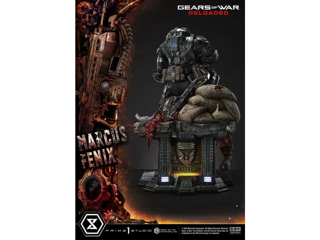 "Zdá se mi, že potřebuješ veškerou pomoc, kterou můžeš dostat." Na bojišti potřísněném krví se objeví legendární Gear v měřítku 1/3. S ohledem na 20. výročí série byla vydána "Gears of War: Přebojená", která přináší remastrovaný střelecký skvost z pohledu třetí osoby zpět na frontovou linii. Z tohoto titulu je Marcus Fenix znovu vytvořen jako skutečná elitní socha Masterline. S grafikou vytvořenou nejnovější technologií zachycenou v detailních detailech v měřítku 1/3, tato socha zobrazuje Marcuse ve výrazné realitě. Jeho postoj na jedno koleno, Lancer připravený, jste viděli nesčetněkrát ve hře. Vyjadřuje vzrušení ze střelby z krytu - střílení, zatímco se skrýváte za překážkami - pomocí pózy. Od jeho modrošedých očí a jizvy na pravém lící po drsnou sadu jeho rysů působí Marcusův tvrdý portrét překvapivě životně. Brnění COG je sochařsky zpracován s texturami odlišenými materiálem, poté dokončován opotřebením vhodným pro drsné podmínky. Dokonce i těžká přítomnost Lanceru je přesvědčivě vykreslena, až do realistického tónu krve naneseného na řetězovou pilu. Speciální základna evokuje brutalitu bojiště a poražený Drone je vyroben s pečlivou pozorností - dokonce i pro přerušené povrchy. Emblémy, Gnasher a náhrdelník vás vtáhnou hlouběji do světa hry. Brnění COG, Lancer a speciální základna jsou také vybaveny LED osvětlením. Studená, neorganická modrá. Planoucí oranžová barva. Drama světla se cítí přímo z hry. Legendární Gear, postavený v měřítku 1/3 s bezkompromisní realitou - to je výkonná posila, která vaši sbírku "Gears of War" posune na vyšší úroveň. "Specifikace: - Gears of War: Přebojená základna s tématem - LED osvětlení (brnění COG, Lancer, základna) Metoda napájení LED: TBD* Připravte prosím baterie, USB kabely nebo jiné potřebné předměty v závislosti na konečné metody napájení. Orientační datum vydání: září 2027
