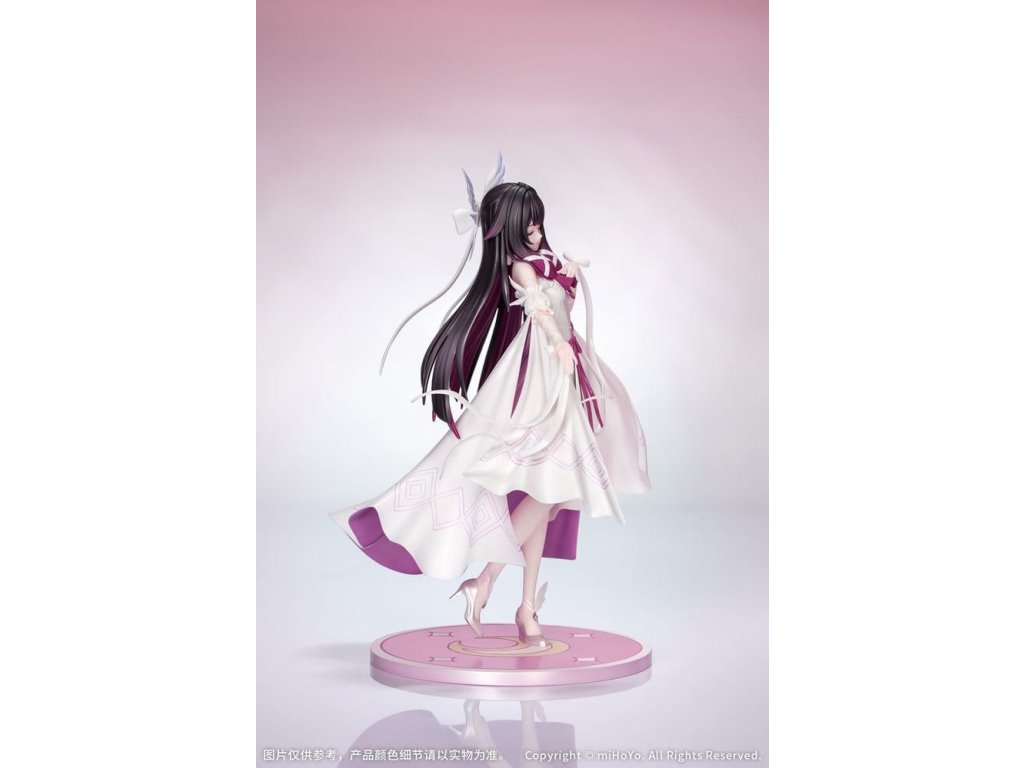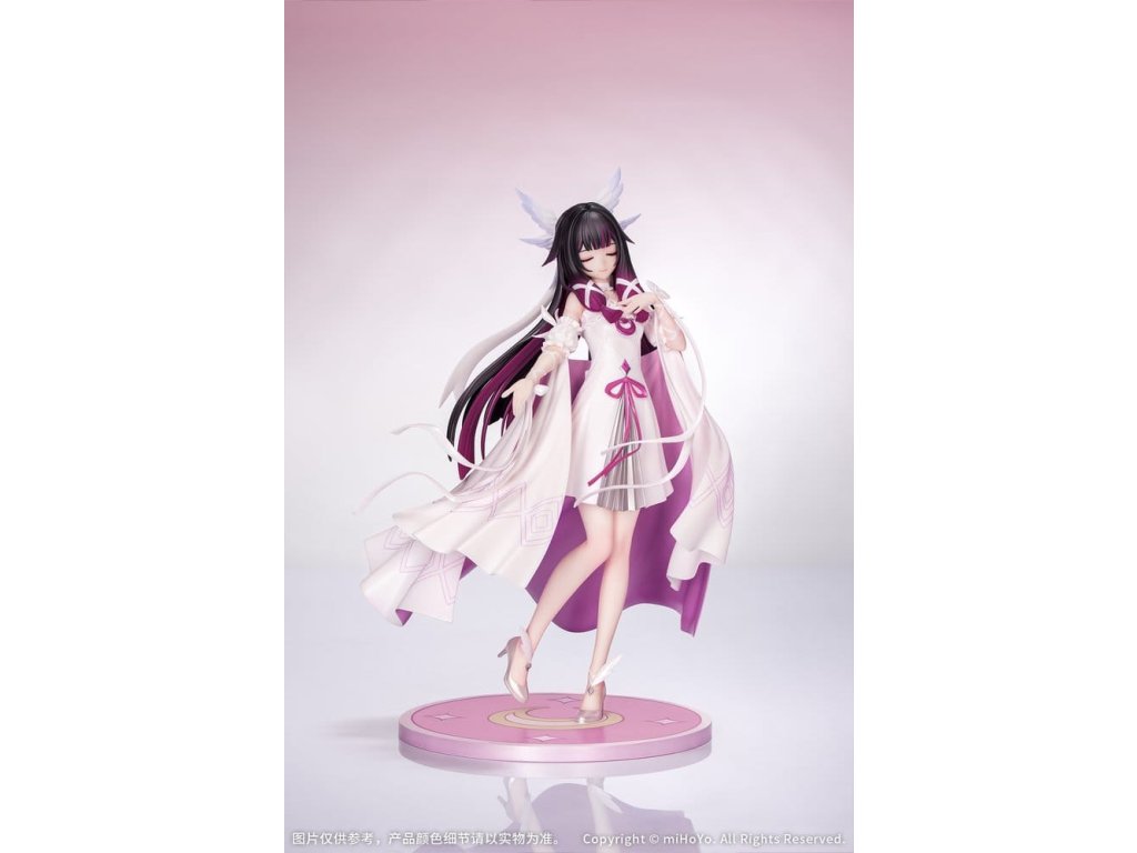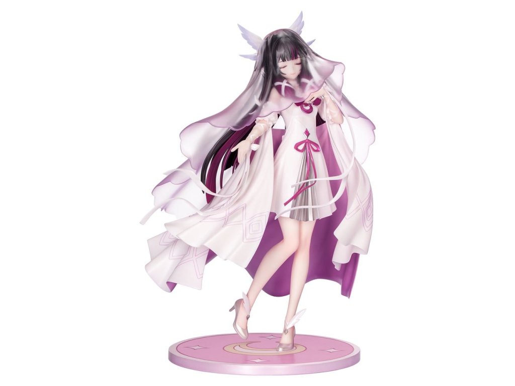 Z hry Genshin Impact, 'Columbina: Sraz Karneval Ver.', přichází brzy nová figura z série Gift+ v měřítku 1/8! Columbina je oblečená ve elegantních, čistě bílých šatech. Odnímatelný průhledný závoj s matnou texturou, podobný skrz naskrz proudícímu a zamlženému měsíčnímu svitu, jemně přikrývá její tvář. Rukávy a plášť se jemně zvedají, poseté třpytivým třpytkami na povrchu, zatímco uvnitř se objevuje jemný a elegantní přechod růžové a fialové barvy. S jednou rukou lehce opřenou o svůj hrudník a druhou mírně zvednutou, stuhou se kolem jejích paží omotávají, jakoby nesené vánkem. Ta bezejmenná melodie se zdá právě teď v tomto okamžiku tiše šeptat do vašich uší... Cestovatelé, poslechnete si melodie, které ona zabručí?
