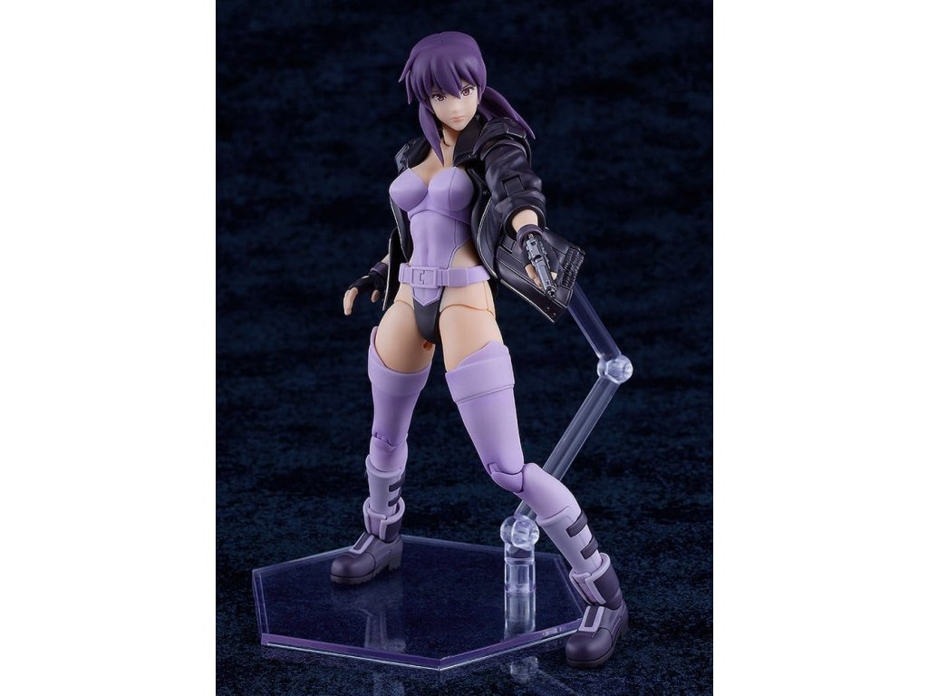 Z anime série inspirované Masamune Shirowem, "GHOST IN THE SHELL STAND ALONE COMPLEX", přichází plastový model PLAMATEA Motoko Kusanagi! Vysoko artikulovaný plastový model je věrným znázorněním původní ilustrace. - Předem namalované tváře zahrnují: standardní obličej, obličej se stisknutými zuby a usměvavý obličej. - Obsahuje předmalované části, díky čemuž je snadné postavu jednoduše sestavit. - Jsou součástí zbraně Seburo M-5 a Seburo C-26A. - Součástí balení je také artikulovaný stojánek, který umožňuje vystavit plastový model v různých pozicích. Orientační datum vydání: září 2026