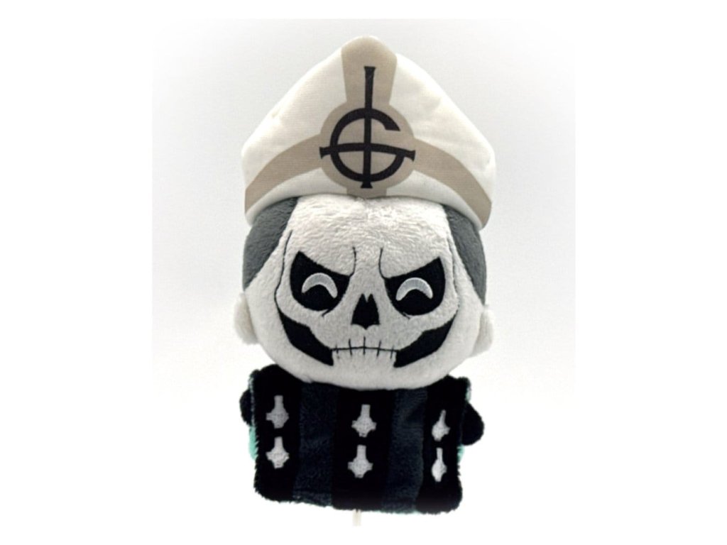 Kázání právě začíná a kdo by ho měl vést lépe než Papa II?! Stojící vysoký 13 cm se zamračenýma očima na své kostěně bílé tváři, bílá a šedá mitra odpočívá na jeho hlavě, zatímco nosí dlouhý černý plášť se vzorem bílých obrácených křížů. Tento přívěsek je naplněný do posledního stehu 100 % bavlněným vycpávkou PP a je vyrobený z nejjemnějšího materiálu minky s kroužkem na klíče připevněným k vrcholu růžovým štítkem, absolutně dokonalý ke zvěšení na vašem batohu, kabelce, kalhotách nebo kdekoliv, kde chcete ukázat, že jste připraveni na rock! O Ghost: Ghost je švédská rocková skupina, která byla založena v roce 2006. Kombinuje divadelní kostýmy a vystoupení s prvky heavy metalu a arena rocku, přičemž s každým albem se jejich vzhled mění, takže fanoušci s nadšením očekávají, jaké budou nové formy Papy a Ghoulů! Orientační datum vydání: říjen 2026