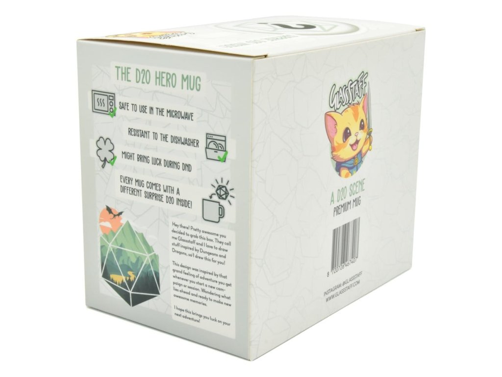 Někdy jste měli ten pocit, když stojíte na vrcholu kopce, zíráte na obzor a připravujete se na další epické dobrodružství? Ne? Tak už nemusíte hledat dál s naším designem D20 obzor. Můžete si představit, jak se vy nebo vaše postava pustí do dalšího epického příběhu, nyní nádherně umístěném na hrníčku pro vás a vaše parťáky, abyste si ho užívali, zatímco popíjíte svůj oblíbený nápoj. Tento DnD hrníček je ideální pro kávu, čaj a horkou čokoládu během těch intenzivních DnD sezení! Hrníček je tištěn s vysoce kvalitním sublimačním tiskem, což z něj dělá velmi ceněný dárek pro každého milovníka horkých nápojů. Design je tištěn na obou stranách hrníčku, takže si ho můžete užít s vašimi parťáky zároveň! Hrníček je speciálně vytvořen s myšlenkou, že bude dárkem pro vás, vaše parťáky, přátele a rodinu. Spolu s malým dárkem kostky D20 v každém hrníčku, budete mít s každým vychutnávajícím momentem vašeho nápoje možnost; hodit pro iniciativu. Hrníček je prezentován v dekorativní krabičce se skleněným okénkem a je vyroben z keramiky, což z něj dělá nádobu vhodnou do myčky i mikrovlnné trouby.