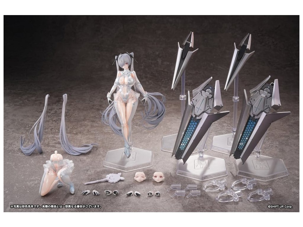 Tato akční figurka pochází z Bohyně vítězství: Nikke. Je přibližně 16 cm vysoká a má různé body artikulace a vyměnitelné díly. To znamená, že figurka může být prezentována v různých pózách. Obsahuje: - Hlavní figurku - 3 x Alternativní část obličeje (bezvýrazný, naštvaný, s očima zavřenýma, včetně výchozího) - 1 x Mini nástroj NEO pro změnu směru očí x1 - 5 x Alternativní sada částí ruky (včetně výchozího) - 2 x Skleněný střevíc (velký) - 2 x Skleněný střevíc (malý) - 1 x Tělo pro pózu ostrostřelce (není pózovatelné) - 1 x Sada dvojitých ocasů pro pózu ostrostřelce - 5 x Sada základny stojanu v podobě šnečí ulity. Orientační datum vydání: únor 2027