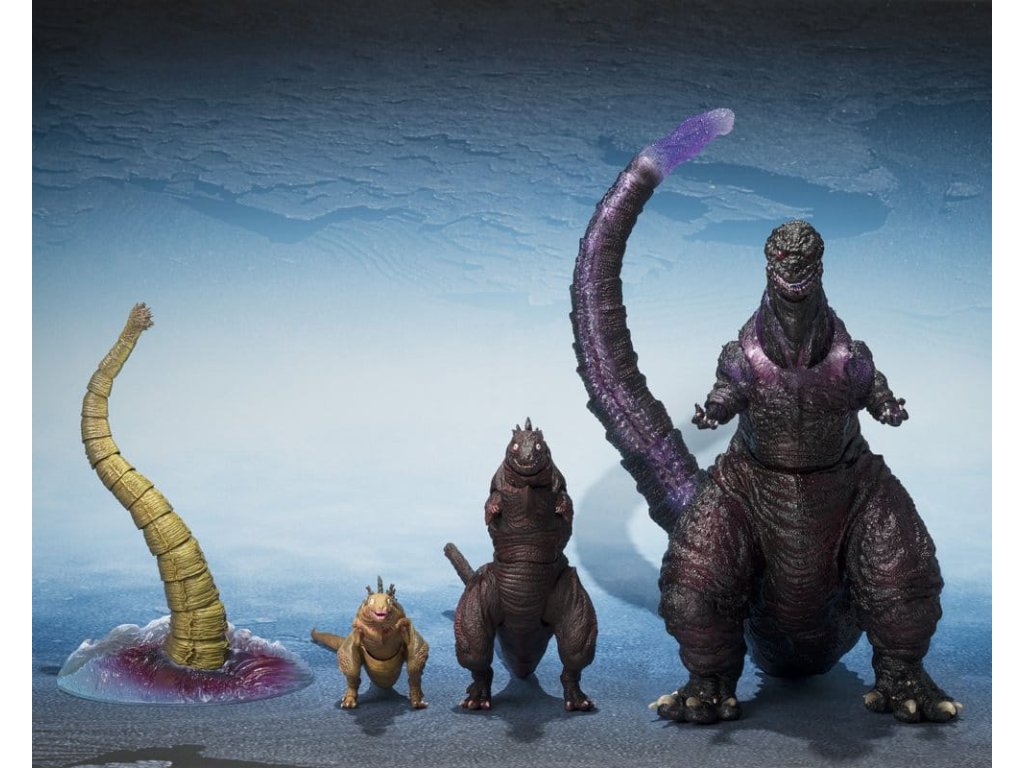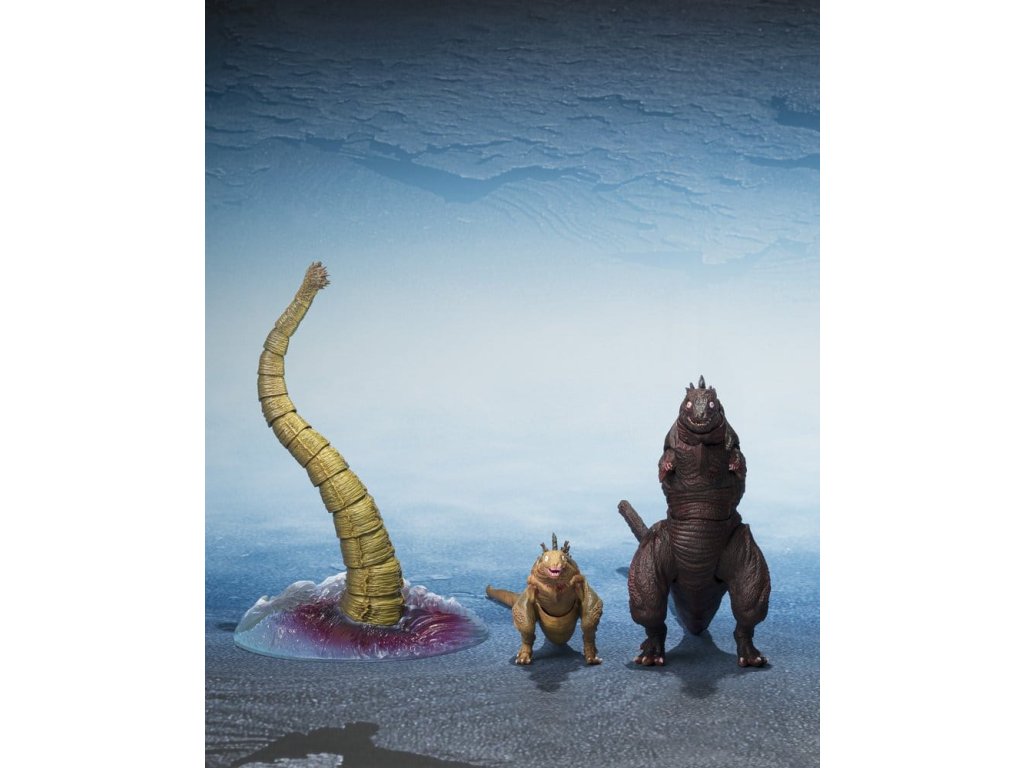 Tento balíček 3 úžasných, plně pohyblivých figurek z řady S.H.MonsterArts od Tamashii Nations se přidává k „Godzille“. Přicházejí s dalšími doplňky v krabici s okýnkem. Rozměry: - Godzilla (2016) 2. forma 5 cm - Godzilla (2016) 3. forma Celkem 13 cm - Obří neidentifikovaná bytost 16 cm. Orientační datum vydání: říjen 2026