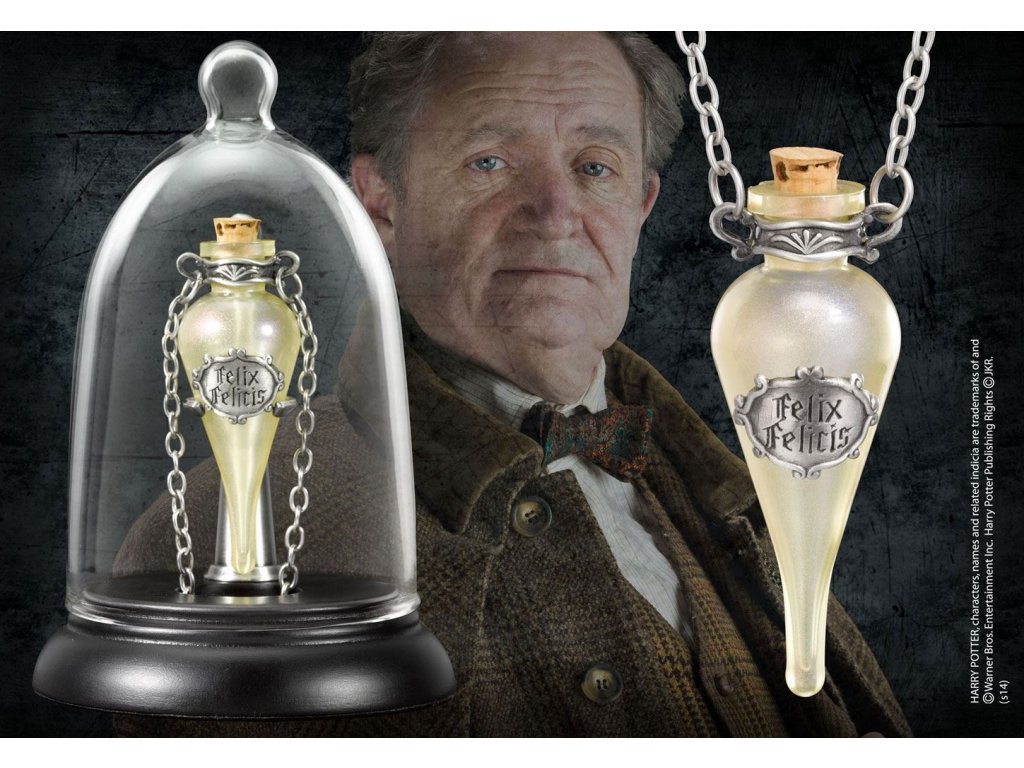 Nádherný displej vytvořený pro prezentaci přívěsku Felix Felicis. Lahvička na lektvar je vyrobena ze skla a kovových ozdob. Balení obsahuje řetízek dlouhý 52 cm.