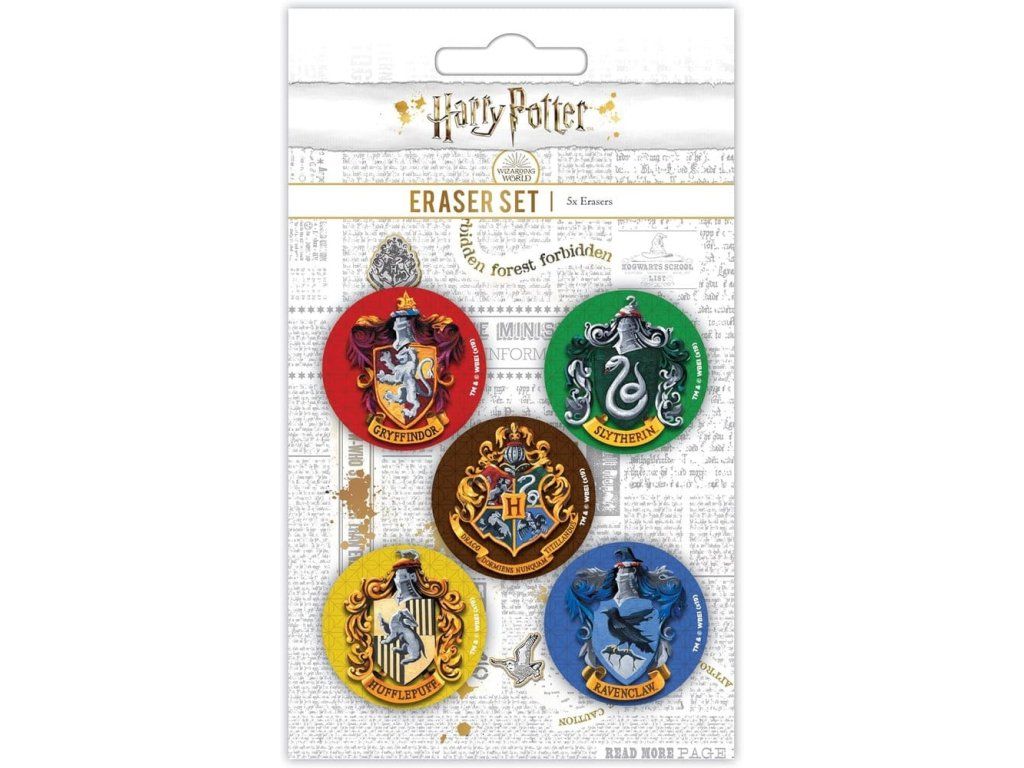 Oficiálně licencovaná sada gumek od značky Pyramid z licence Harryho Pottera s motivem erbů Bradavic.