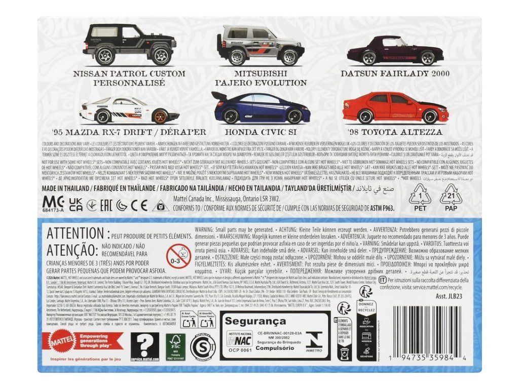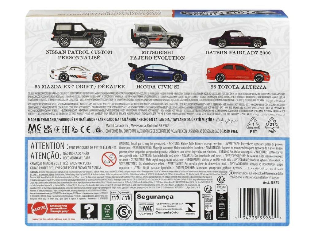 Multipack Hot Wheels 'Ulice Japonska' posune každou sbírku aut do vyšších otáček. Sada šesti autíček v měřítku 1:64 obsahuje moderní i veteránské japonské vozy. Vysoce kvalitně zpracovaná vozidla jsou uložena v tematicky laděném obalu. Fanoušci by si měli prohlédnout i další tematické multipacky se Zamacem, HW Legends a Euro Style, aby doplnili svou sbírku. Všechny položky se prodávají samostatně. Některé položky nejsou distribuovány ve všech zemích. Styl, barva a design se mohou lišit.