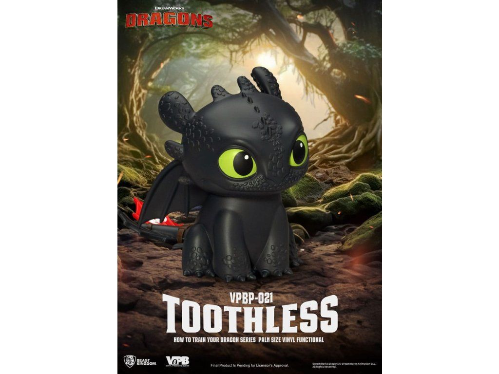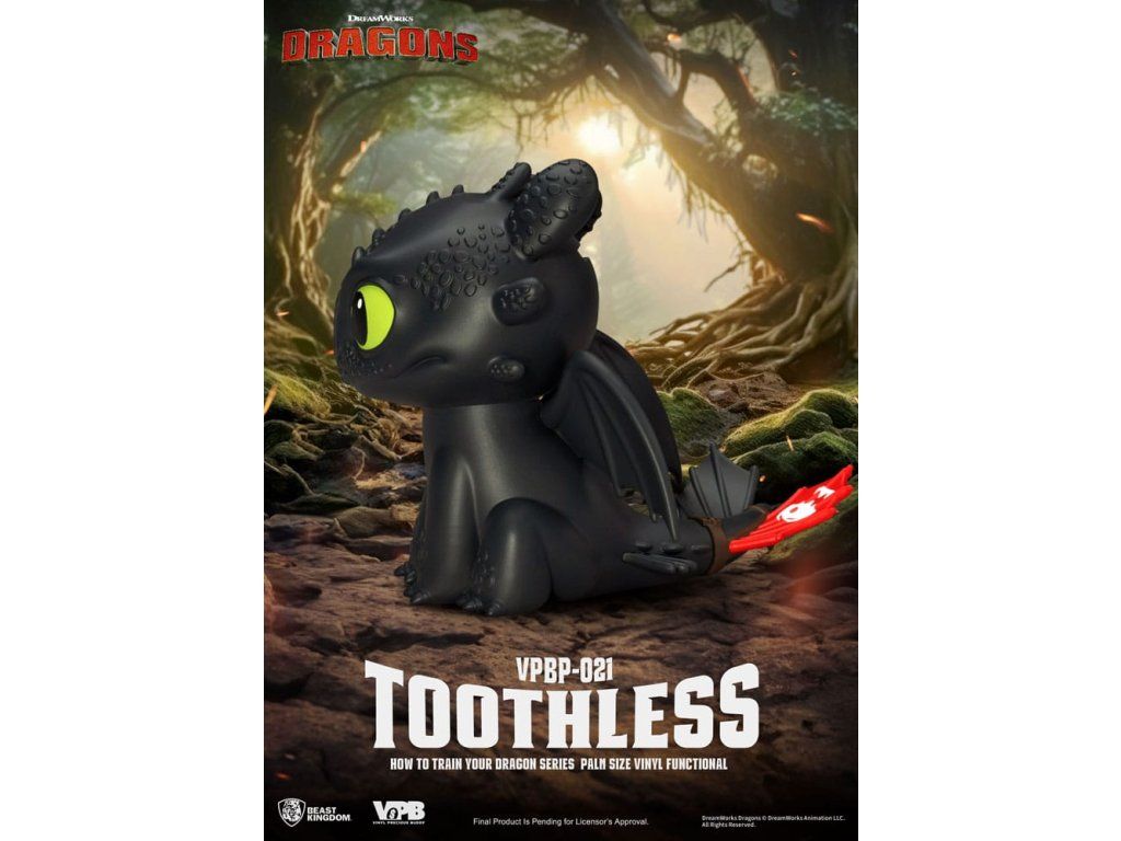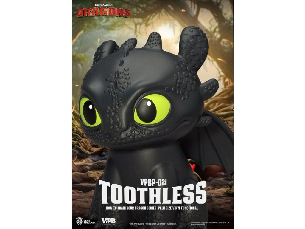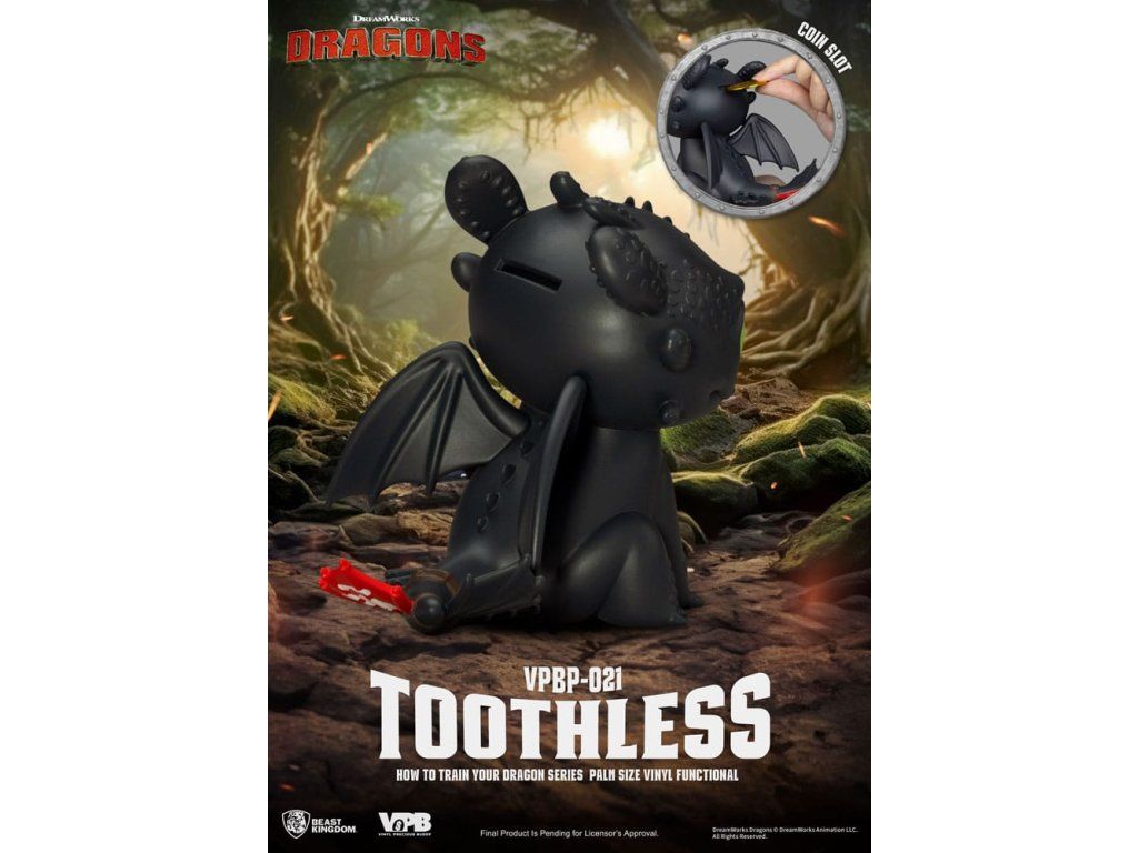 Bezubka, milovaný Noční Hněv z filmu Jak vycvičit draka, se vrací v neodolatelně roztomilé podobě mincového prasátka ve stylu chibi! Je součástí série "Vinyl Piggy Bank" od Beast Kingdom ve velikosti pro dlaň, tato postavička je vysoká 12 cm a je vyrobena z kvalitního měkkého vinylu. Detailní sochařské zpracování zachycuje Bezubkovy charakteristické šupiny, expresivní oči a ikonickou červenou protézu ocasu - jako pocta jeho hlubokému vztahu s Hiccupem. Se štěrbinou na mince na zadní straně je roztomilé i praktické - ideální pro dárek nebo vystavení. Nechte Bezubka strážit vaše úspory a rozzářit váš den svým ostrým kouzlem! - Bezubka: ten nejroztomilejší drak z filmu Jak vycvičit draka - Dekorativní mincové prasátko velikosti pro dlaň s hodnotou sběratelského kusu.