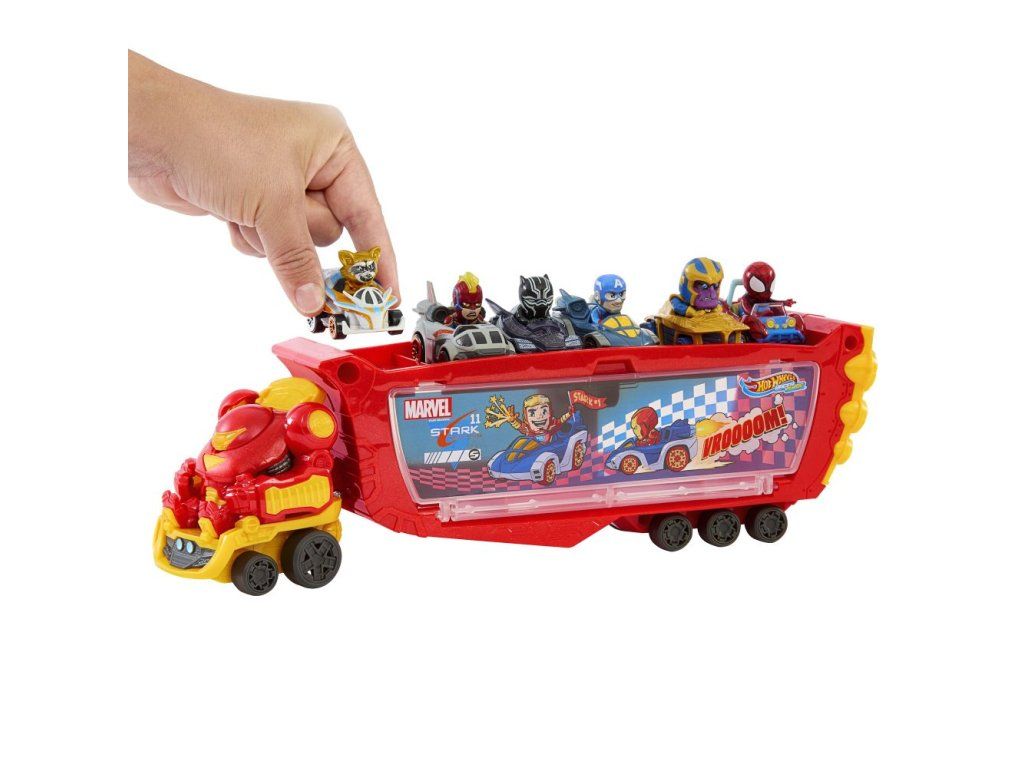 Naložte závoďáky Hot Wheels RacerVerse do náklaďáku Hulkbuster, který má odnímatelnou, volně se pohybující kabinu pro doplňkovou zábavu. Náklaďák je pokrytý parádní závodní grafikou, která vypadá skvěle i při vystavení. Pojme až 10 vozidel Hot Wheels RacerVerse nebo autíček Hot Wheels v měřítku 1:64. (Další vozidla se prodávají samostatně.) Barvy a provedení se mohou lišit.