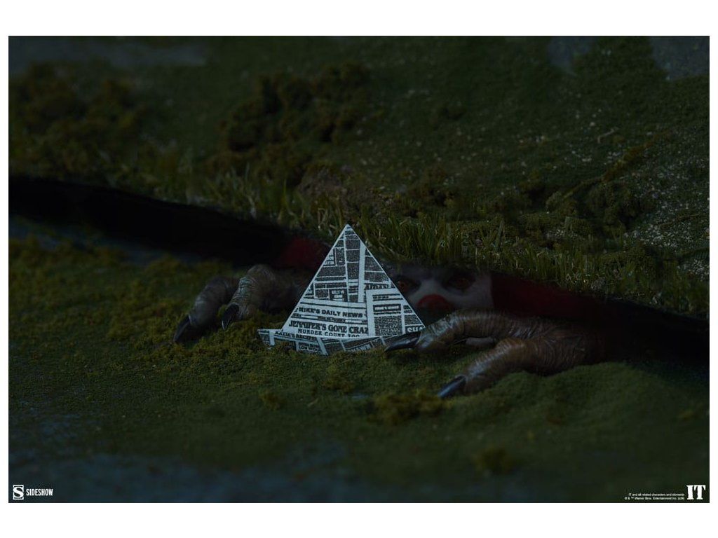 „Jsem každá noční můra, kterou jste kdy měli. Jsem váš nejhorší sen, který se stal skutečností.“ Sideshow představuje figurku Pennywise v měřítku 1/6, inspirovanou televizním minisériem It (1990). Tento ikonický hororový sběratelský kousek je vše, čeho jste se kdy báli! Figurka Pennywise v měřítku 1/6 nese detailní podobu herce Tima Curryho v jeho roli proměnlivého tancujícího klauna. Pronásledující malé město Derry v Maine, Pennywise má šitý látkový kostým, který zahrnuje volný žlutý klaunský oblek, vícebarevný volánový límec, jasně oranžové bambulky a pruhovaný plášť v modrých a fialových tónech. Jeho mrazivou přítomnost doplňují dva vyměnitelné portréty — jeden usměvavý a druhý s monstrózními zuby, oba s hustým bílým líčením a syntetickými červenými vlasy. Nechceš balónek? Figurka Pennywise v měřítku 1/6 je vysoce artikulovaná a pózovatelná sběratelská figurka s řadou zlověstných doplňků vycházejících z úspěšné adaptace. Pennywise nese papírovou lodičku i kytici barevných balónků, včetně jednoho odnímatelného žlutého balónku, který lze držet samostatně, aby mohl děsit děti. Tato hororová figurka také obsahuje celkem 12 vyměnitelných rukou, včetně klasických bílých rukavic pro pózy mávání a gestikulace, sady děsivých drápů a dalších. Od hlavy až k patě můžete monstrum upravit a přivést své nejhorší noční můry k životu. Ahoj, Georgie! Následuj svou lodičku a pořiďte si domů figurku Pennywise v měřítku 1/6 od Sideshow ještě dnes. Figurka Pennywise v měřítku 1/6 obsahuje: - Model hlavy (headsculpt) Tima Curryho, jak je známý z It (1990) - 2 vyměnitelné hlavy - Usměvavý portrét - Monstrózní portrét - Syntetické vlasy - Šitý kostým, včetně: - Žlutý klaunský oblek - Vícebarevný volánový límec - Oranžové bambulky - Pruhovaný plášť v modré a fialové - Celkem 12 rukou - Papírová lodička - Kytice balónků - Odnímatelný samostatný žlutý balónek - Černá šestiúhelníková podstava Rozměry: 30 x 15 x 20 cm (11,75" x 6" x 8")