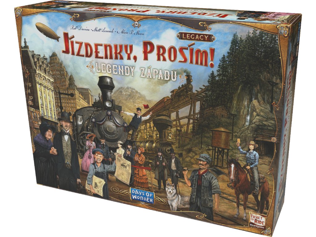 Jízdenky, prosím!: Legacy – Legendy západu vám konečně dávají možnost vkročit do příběhu vaší oblíbené vláčkové hry. Autoři Rob Daviau, Matt Leacock a Alan R. Moon vás nechají nahlédnout do své představivosti. Vyrazíte na cestu napříč dvanácti hrami.