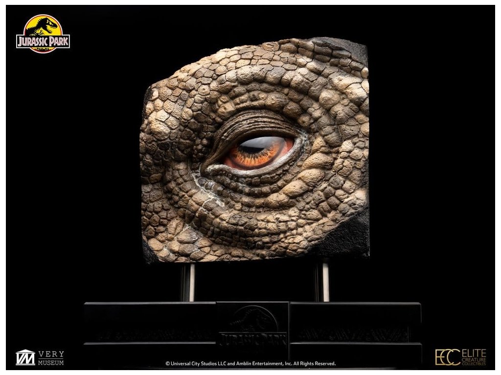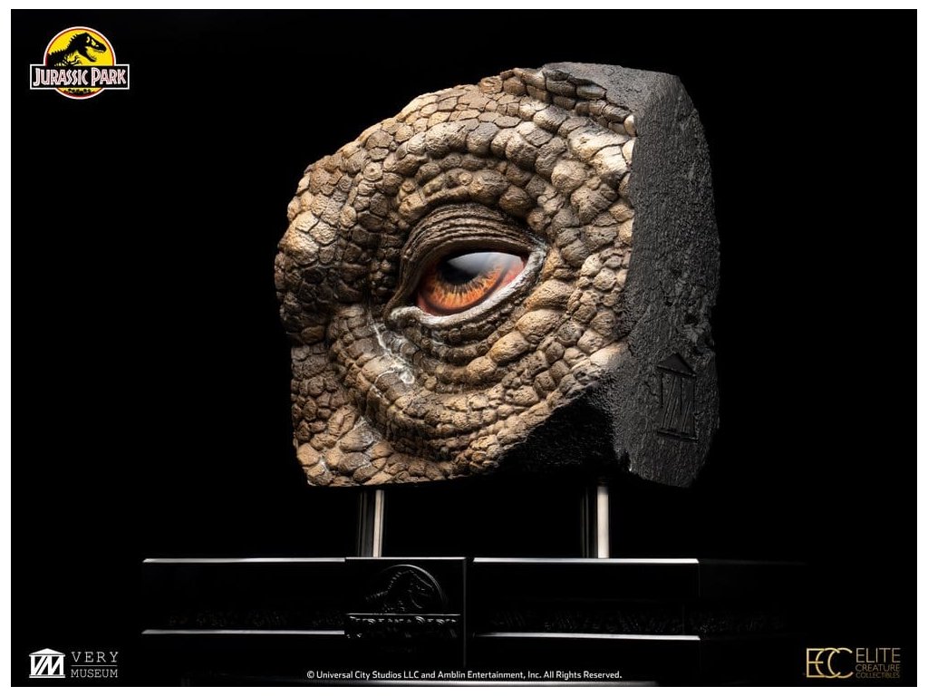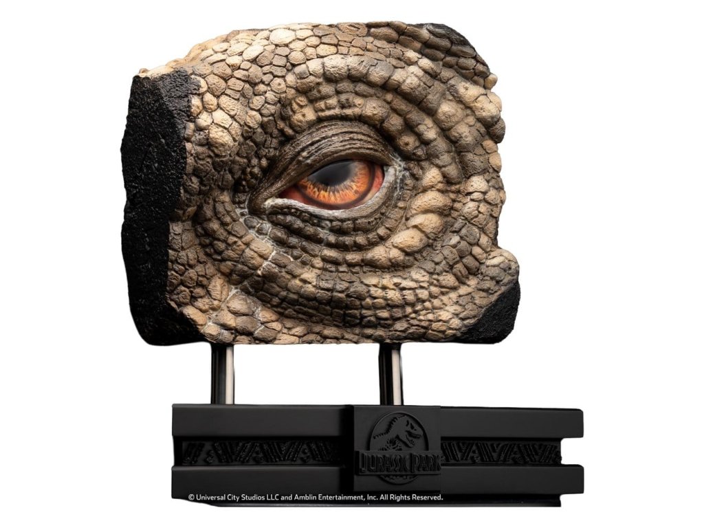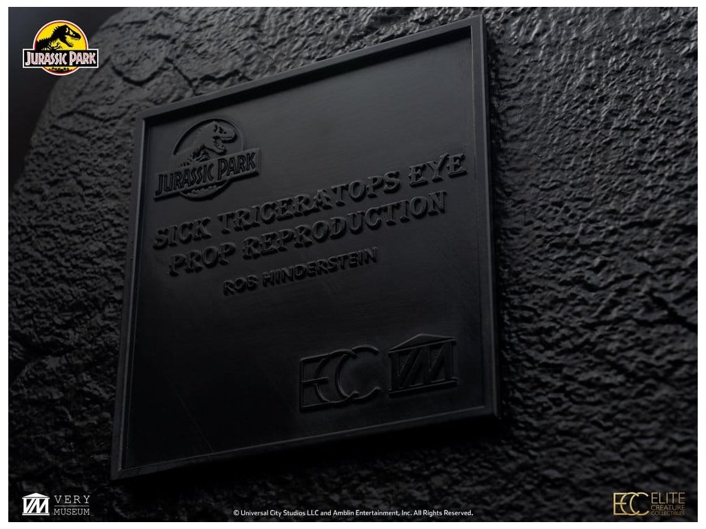 Tato rekvizita oka Triceratops pochází z Akademií oceněného sci-fi dobrodružství Stevena Spielberga Jurský Park. Během prohlídky ostrova s Johnem Hammondem (Richard Attenborough) se Dr. Alan Grant (Sam Neill) a Dr. Ellie Sattler (Laura Dern) setkávají s nemocným Triceratopsem - jednou z nejikoničtějších a emocionálně rezonančních scén filmu. Oči Triceratops byly původně vytvořena pro životnou velikost Sick Triceratops animatroniku. Původní oči použité ve filmu navrhl a vyřezal legendární specialista na speciální efekty Rob Hinderstein ze Stan Winston Studia. Elite Creature Collectibles je hrdá, že vám může představit reprodukci rekvizity oka Triceratops, nejnovější reprodukci filmové rekvizity z franšízy Jurský Park. Použitím původních mistrovských barev, krokového vedení od klíčového umělce studia Stan Winston Rob Hindersteina a přímého přístupu k původnímu rekvizitě pro oční bulvu a jádro, klíčový umělec ECC Oskar Ankarudd a umělec ILM Bitan věrně rekonstruovali každý detail. Využitím technologie plnobarevného 3D tisku, tato kus dodává úžasné a velmi přesné výroby původních očí Triceratops použité v obrazovce. Specifikace: - Přibližně 13,7 palců (35 cm) na výšku - Přibližně 13,3 palců (34 cm) v šířce - Přibližně 7.2 palce (18 cm) do hloubky - Odlitek z kvalitní pryskyřice s ručně malovanými detaily - Přesná reprodukce původních očí použitých na obrazovce, navržených Robem Hindersteinem - Obsahuje certifikát o pravosti podepsaný rukou Bitanem a Oskarem Ankaruddem - Přitažlivý tematický podstavec pro výstavu umění Omezeno na 50 kusů. Orientační datum vydání: listopad 2026