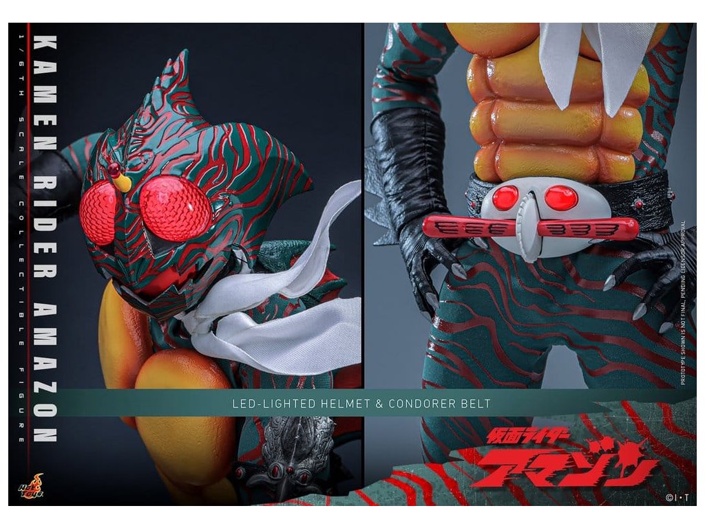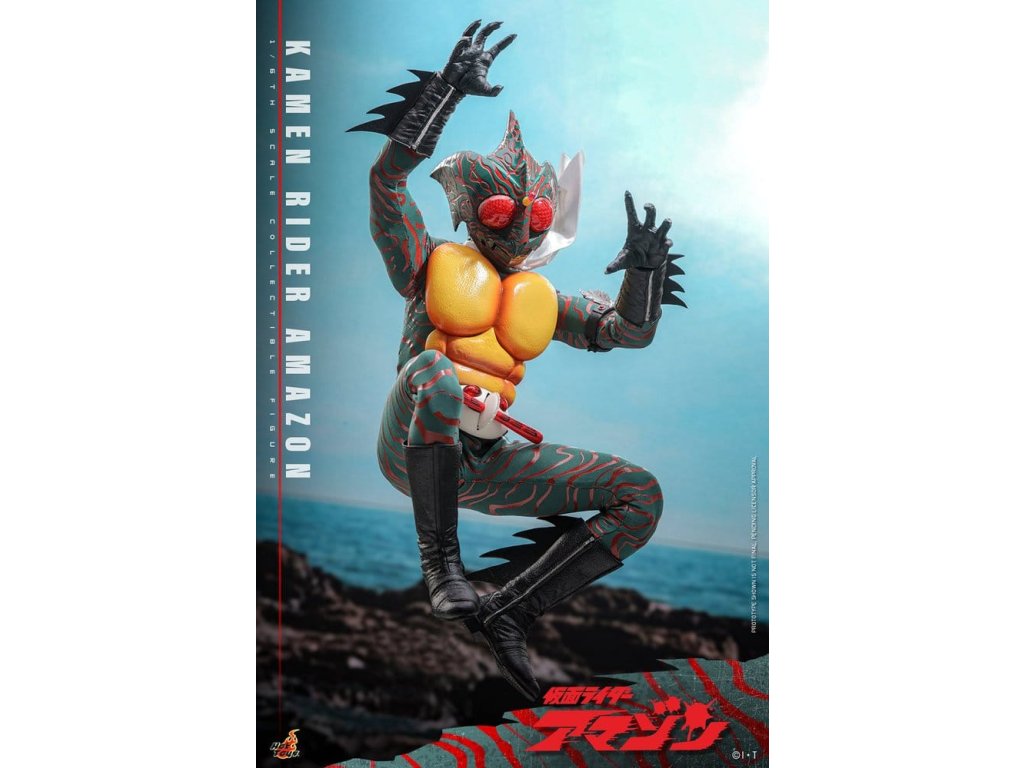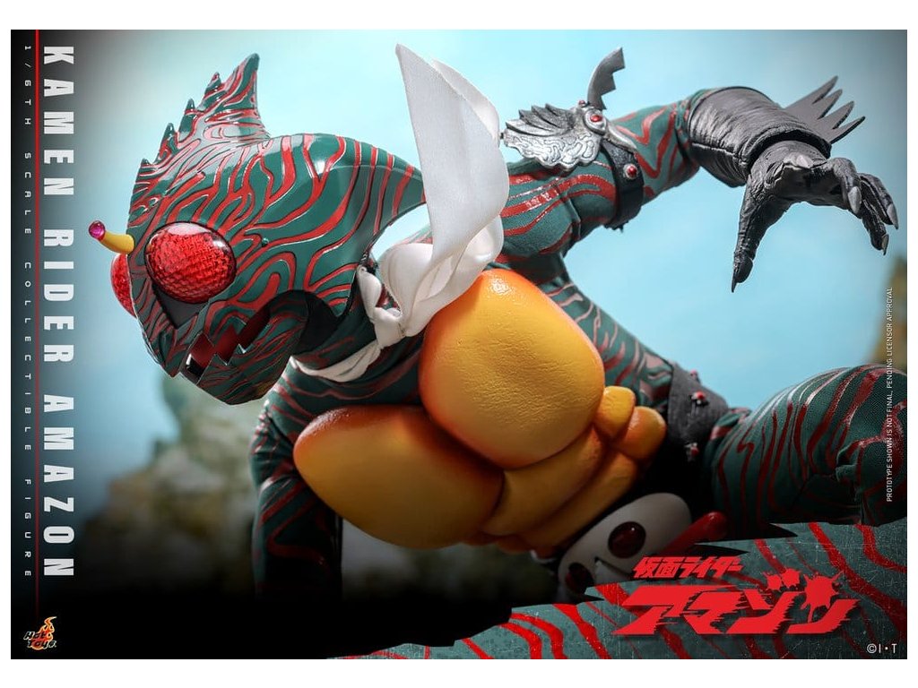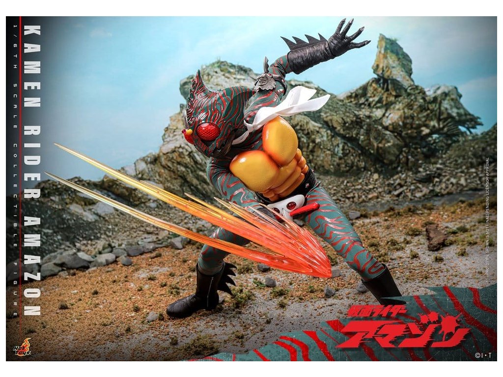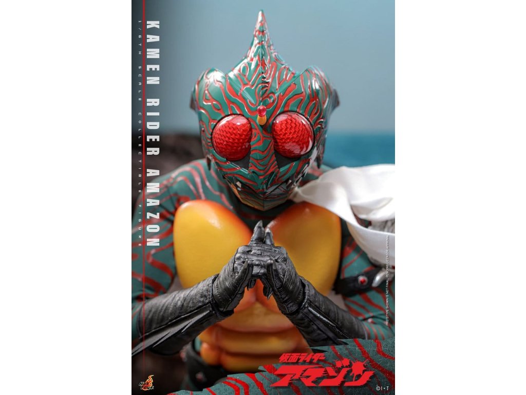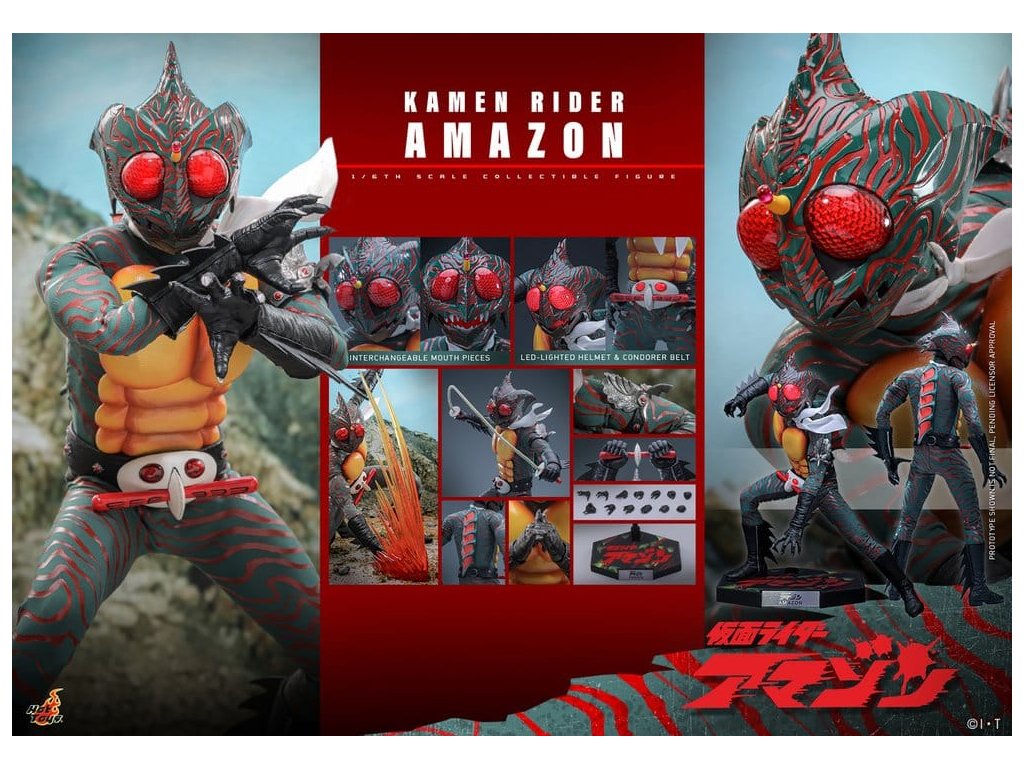 "A-MA-ZON!" - Kamen Rider Amazon. V televizním seriálu Kamen Rider Amazon z roku 1974 byl Daisuke Yamamoto (známý jako Amazon) vychováván jako feral dítě v deštném pralese Amazonky incaským kmenem poté, co ho tragická letecká nehoda osiřila. S GiGi náramkem splývajícím s jeho paží se transformuje na Kamen Rider Amazon a loví zlovolnou organizaci Gedon a říši Garanda za vyvraždění jeho vesnice.Sideshow a Hot Toys s nadšením oznamují postavičku Kamen Rider Amazon v měřítku 1:6. Figurka má nově vyvinutou přilbu s anténou, artikulovaným ústím se dvěma výměnnými ústy (normální a vyvrácené zuby) a je zvýrazněna LED osvětlenýma očima, které svítí červeně. Vysoce artikulované tělo umožňuje dynamické pózy, které zachycují Amazonovy zvířecí pohyby. Řada výměnných rukavicek včetně gest křivky, gesta přátelství a podpisových útočných póz, jako je Wild Slash (Dai Setsudan), umožňuje rozsáhlé možnosti zobrazení věrné sérii.Kostým Kamen Rider Amazon je pečlivě zrekonstruován s nově vyvinutým zeleným oděvem zdůrazněným červenými pruhy, doplněným o žlutooranžový měkký vinyl materiál na prsou a hřbetní ploutvi, který zdůrazňuje jeho primitivní siluetu. Další detaily zahrnují bílou náplň zabudovanou do motoru, ikonický GiGi náramek, černé měkké vinylové rukávy a boty vybavené noži na ploutve a Condorer pásem - se světelnou LED funkcí s magnetickým spuštěním a magneticky odnímatelnou středovou částí.Pro boj je Amazon vybaven svým podpisovým Condorer Rope, vyrobeným z ohýbatelného drátu pro expresivní pózování. Průhledný červený efekt útoku Wild Slash (Dai Setsudan) umožňuje sběratelům rekonstruovat jeho ničivý finální tah. Figurka je doplněna speciálně navrženým stojanem na figurky s logem Kamen Rider Amazon a štítkem s názvem postavy, což dělá z ní zvláštní kousek pro jakoukoli sbírku Kamen Rider. Divoký, instinktivní a nezapomenutelný, sběratelská figurka Kamen Rider Amazon je nezbytnou poctou jednomu z nejprimitivnějších hrdinů v dědictví Kamen Rider.