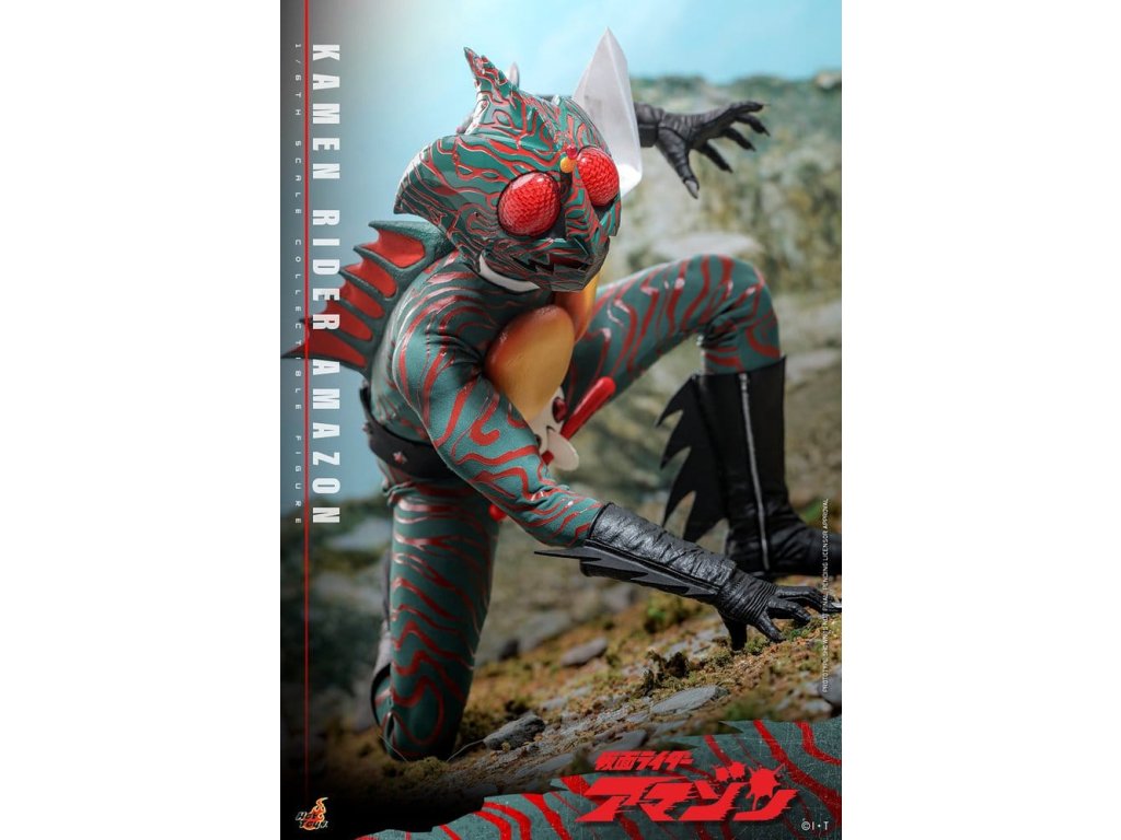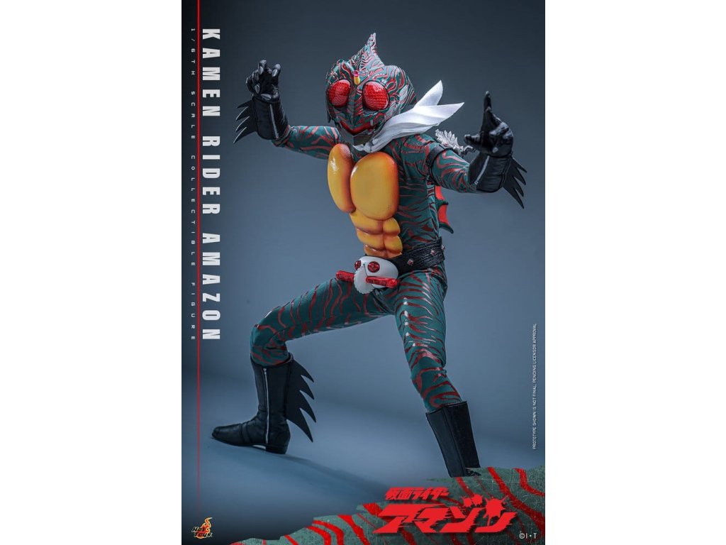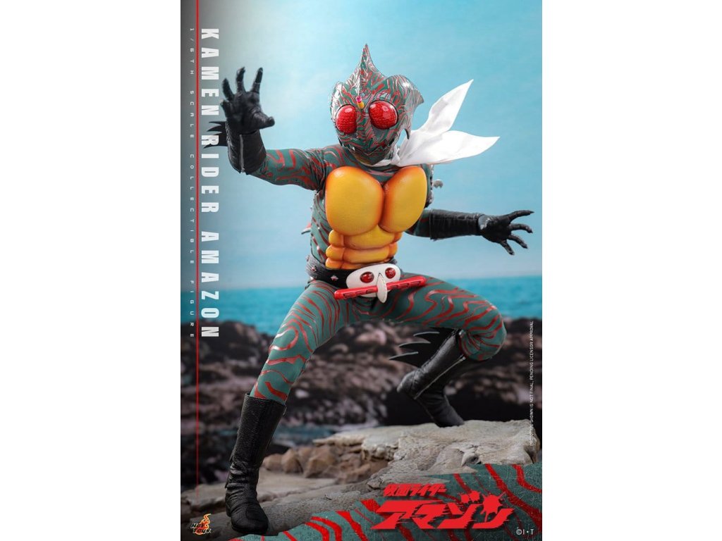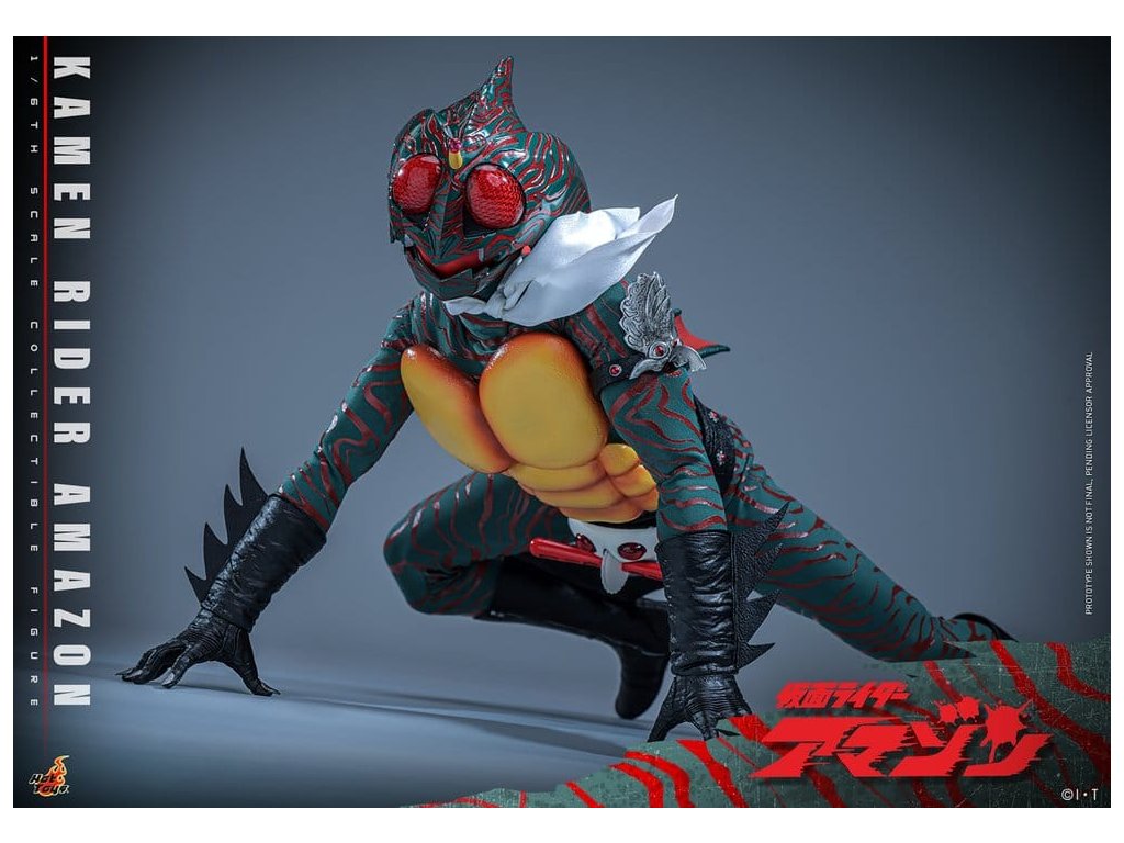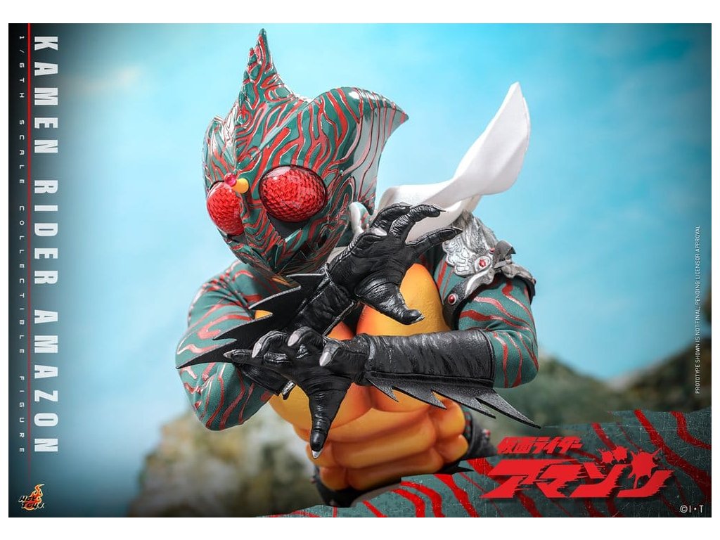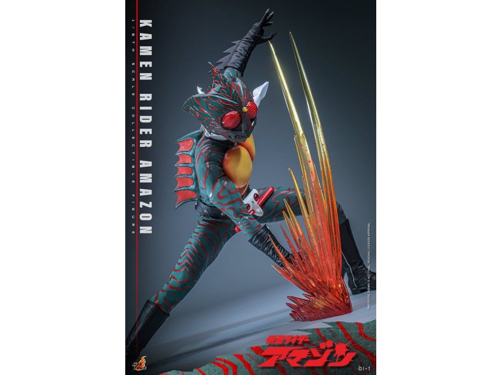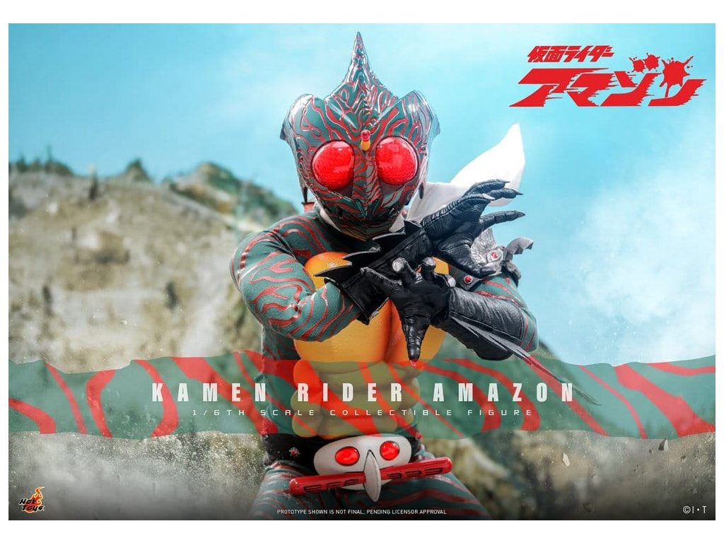 "A-MA-ZON!" - Kamen Rider Amazon. V televizním seriálu Kamen Rider Amazon z roku 1974 byl Daisuke Yamamoto (známý jako Amazon) vychováván jako feral dítě v deštném pralese Amazonky incaským kmenem poté, co ho tragická letecká nehoda osiřila. S GiGi náramkem splývajícím s jeho paží se transformuje na Kamen Rider Amazon a loví zlovolnou organizaci Gedon a říši Garanda za vyvraždění jeho vesnice.Sideshow a Hot Toys s nadšením oznamují postavičku Kamen Rider Amazon v měřítku 1:6. Figurka má nově vyvinutou přilbu s anténou, artikulovaným ústím se dvěma výměnnými ústy (normální a vyvrácené zuby) a je zvýrazněna LED osvětlenýma očima, které svítí červeně. Vysoce artikulované tělo umožňuje dynamické pózy, které zachycují Amazonovy zvířecí pohyby. Řada výměnných rukavicek včetně gest křivky, gesta přátelství a podpisových útočných póz, jako je Wild Slash (Dai Setsudan), umožňuje rozsáhlé možnosti zobrazení věrné sérii.Kostým Kamen Rider Amazon je pečlivě zrekonstruován s nově vyvinutým zeleným oděvem zdůrazněným červenými pruhy, doplněným o žlutooranžový měkký vinyl materiál na prsou a hřbetní ploutvi, který zdůrazňuje jeho primitivní siluetu. Další detaily zahrnují bílou náplň zabudovanou do motoru, ikonický GiGi náramek, černé měkké vinylové rukávy a boty vybavené noži na ploutve a Condorer pásem - se světelnou LED funkcí s magnetickým spuštěním a magneticky odnímatelnou středovou částí.Pro boj je Amazon vybaven svým podpisovým Condorer Rope, vyrobeným z ohýbatelného drátu pro expresivní pózování. Průhledný červený efekt útoku Wild Slash (Dai Setsudan) umožňuje sběratelům rekonstruovat jeho ničivý finální tah. Figurka je doplněna speciálně navrženým stojanem na figurky s logem Kamen Rider Amazon a štítkem s názvem postavy, což dělá z ní zvláštní kousek pro jakoukoli sbírku Kamen Rider. Divoký, instinktivní a nezapomenutelný, sběratelská figurka Kamen Rider Amazon je nezbytnou poctou jednomu z nejprimitivnějších hrdinů v dědictví Kamen Rider.