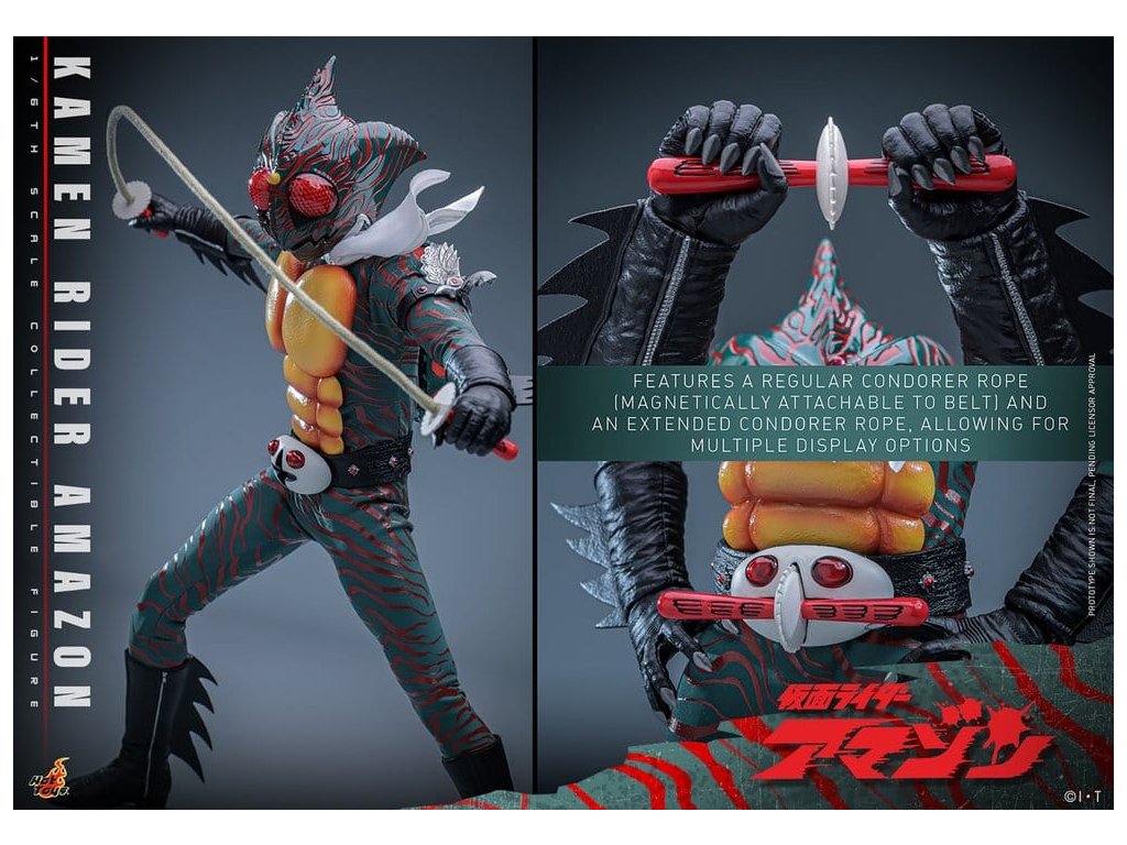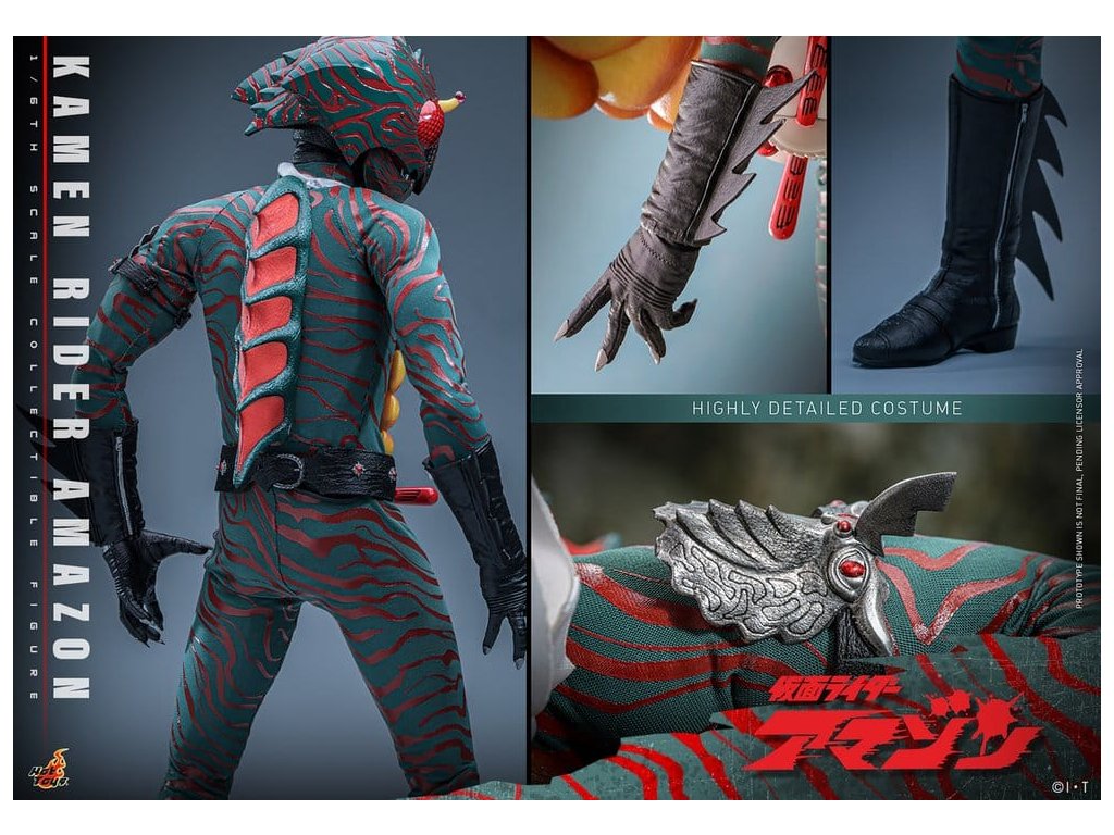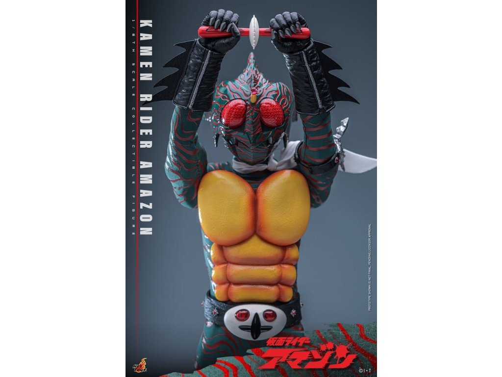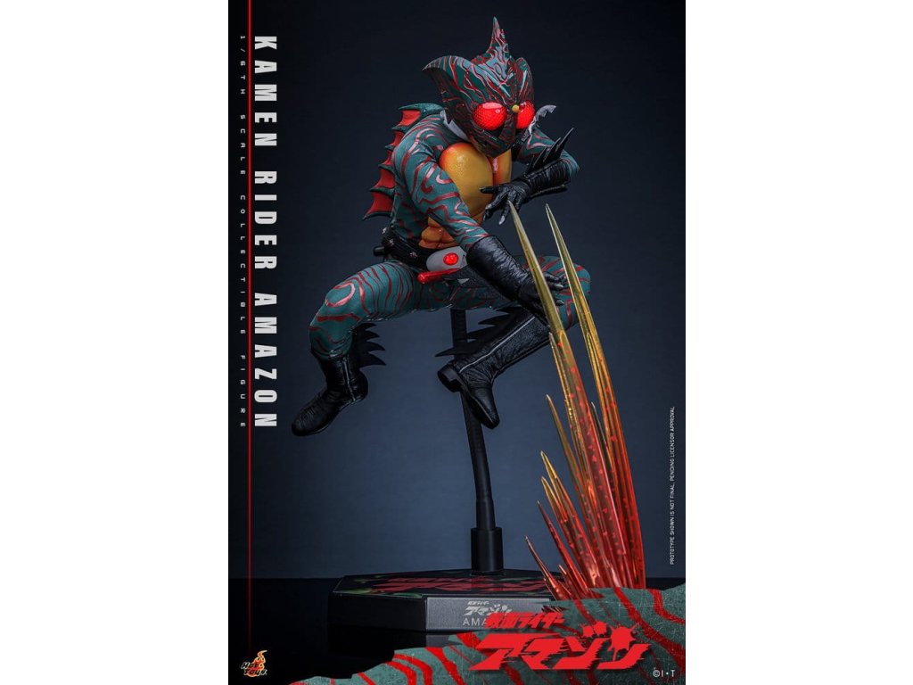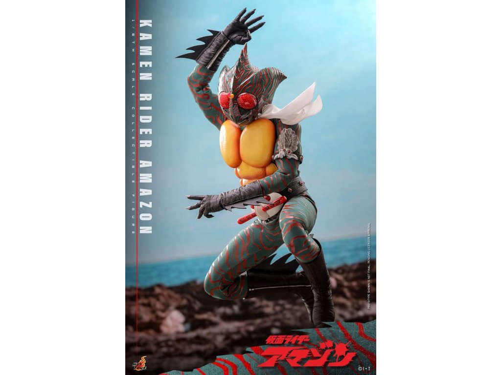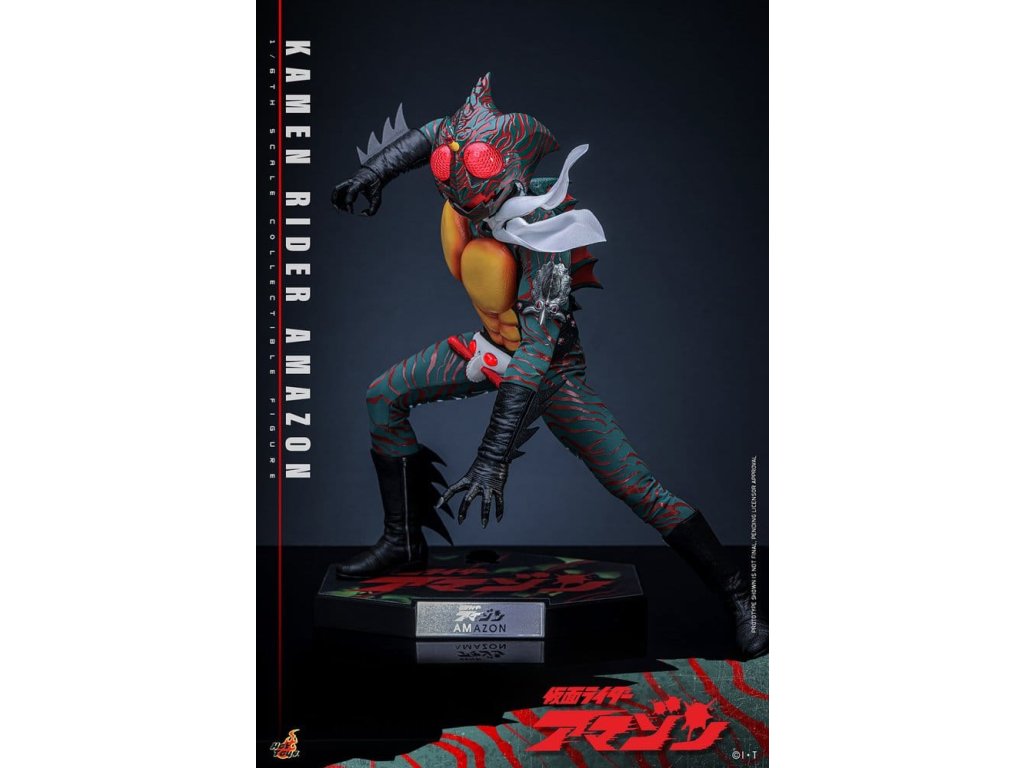 "A-MA-ZON!" - Kamen Rider Amazon. V televizním seriálu Kamen Rider Amazon z roku 1974 byl Daisuke Yamamoto (známý jako Amazon) vychováván jako feral dítě v deštném pralese Amazonky incaským kmenem poté, co ho tragická letecká nehoda osiřila. S GiGi náramkem splývajícím s jeho paží se transformuje na Kamen Rider Amazon a loví zlovolnou organizaci Gedon a říši Garanda za vyvraždění jeho vesnice.Sideshow a Hot Toys s nadšením oznamují postavičku Kamen Rider Amazon v měřítku 1:6. Figurka má nově vyvinutou přilbu s anténou, artikulovaným ústím se dvěma výměnnými ústy (normální a vyvrácené zuby) a je zvýrazněna LED osvětlenýma očima, které svítí červeně. Vysoce artikulované tělo umožňuje dynamické pózy, které zachycují Amazonovy zvířecí pohyby. Řada výměnných rukavicek včetně gest křivky, gesta přátelství a podpisových útočných póz, jako je Wild Slash (Dai Setsudan), umožňuje rozsáhlé možnosti zobrazení věrné sérii.Kostým Kamen Rider Amazon je pečlivě zrekonstruován s nově vyvinutým zeleným oděvem zdůrazněným červenými pruhy, doplněným o žlutooranžový měkký vinyl materiál na prsou a hřbetní ploutvi, který zdůrazňuje jeho primitivní siluetu. Další detaily zahrnují bílou náplň zabudovanou do motoru, ikonický GiGi náramek, černé měkké vinylové rukávy a boty vybavené noži na ploutve a Condorer pásem - se světelnou LED funkcí s magnetickým spuštěním a magneticky odnímatelnou středovou částí.Pro boj je Amazon vybaven svým podpisovým Condorer Rope, vyrobeným z ohýbatelného drátu pro expresivní pózování. Průhledný červený efekt útoku Wild Slash (Dai Setsudan) umožňuje sběratelům rekonstruovat jeho ničivý finální tah. Figurka je doplněna speciálně navrženým stojanem na figurky s logem Kamen Rider Amazon a štítkem s názvem postavy, což dělá z ní zvláštní kousek pro jakoukoli sbírku Kamen Rider. Divoký, instinktivní a nezapomenutelný, sběratelská figurka Kamen Rider Amazon je nezbytnou poctou jednomu z nejprimitivnějších hrdinů v dědictví Kamen Rider.