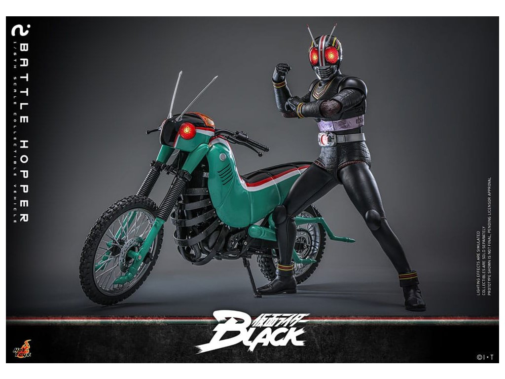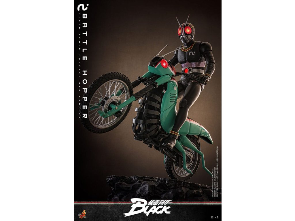 V klasické sérii Kamen Rider Black z roku 1987 je Battle Hopper víc než jen motorka, je to živý, loajální partner Kotaro Minamiho. Stvořený společností Gorgom pro Kings of the Century, tento koníček inspirovaný Rider Machine pomáhá Kotarovi v dramatickém útěku z kultu a podporuje ho v nespočetných bitvách. Battle Hopper má schopnost se zahojit, když je zraněn a dokáže se postavit, když je převrácen. S těmito pozoruhodnými schopnostmi se vyprofiloval jako pravý druh Kotarovi. Během závěrečného souboje utrpěl Battle Hopper těžké škody, získal tak hrdinské rozloučení a upevnil své místo jako pravá legenda. Sideshow a Hot Toys s nadšením představují sběratelské vozidlo Battle Hopper ve škále 1/6. Jde o věrný a podrobně vypracovaný hold této ikonické Rider Machine. Model dlouhý přibližně 36 cm, široký 14 cm a vysoký 21 cm představuje autentické mechanické funkce od motoru, rámu, výfuku až po stojany. Battle Hopper je jemně natřený lesklými zelenými, rudými a bílými barvami. Exteriér inspirovaný kobylkou obsahuje dlouhé tykadla, kobylčí nohy a světla s LED červeným světlem, které napodobuje oči. Vlastnosti jako zadní odpružení a otáčecí kola s pneumatikami znečištěnými prachem ukazují mistrovské řemeslo. Toto sběratelské vozidlo je dokonale velké tak, aby doplňovalo Kamen Rider Black Sixth Scale Figurku. Společně jsou připraveni bojovat a znovu vytvářet klasický speciální pohyb na kolečku! Zachycuje každý ikonický prvek a nostalgický okamžik a zajišťuje, že žádná sbírka Riderů není kompletní bez Kotarova neohroženého průvodce. Rozměr výrobku: 21 x 14 x 36 cm. Figurka Kamen Rider není součástí balení.
