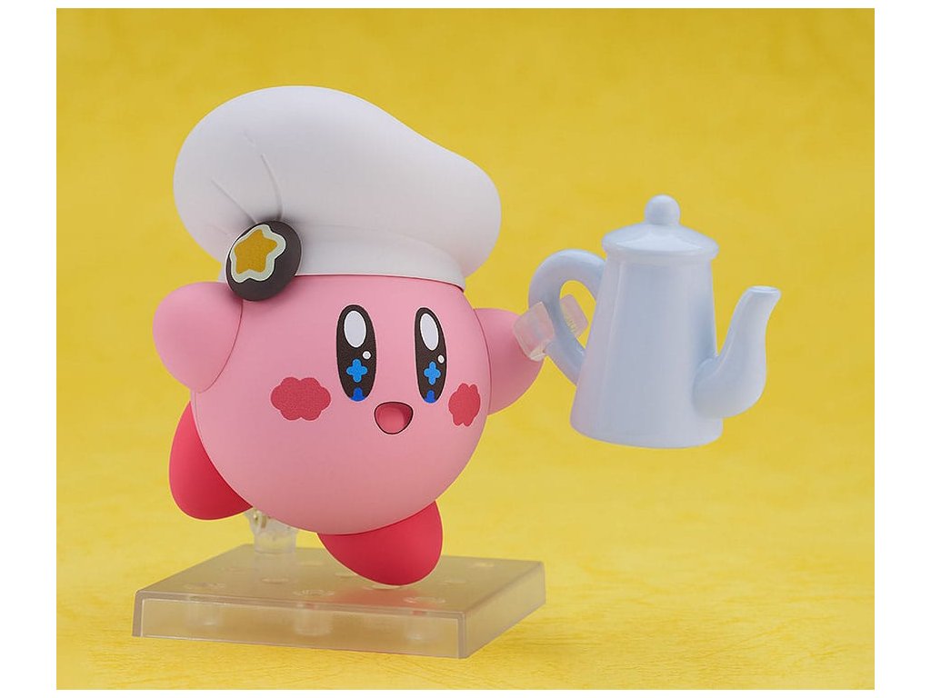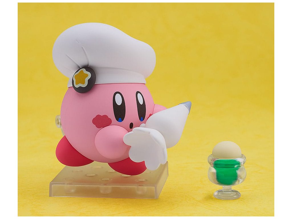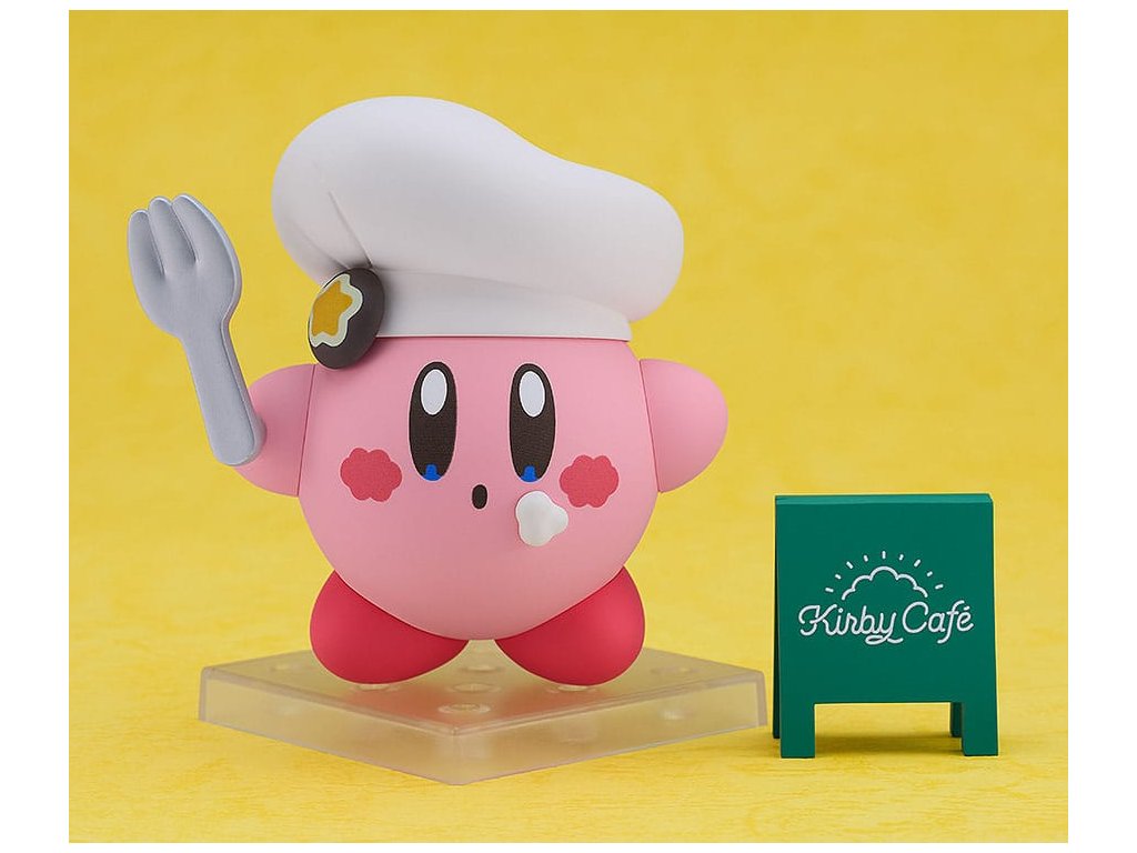 Chuťový tester Kirby Cafe (?) Kirby je nyní Nendoroidem. Představujeme Nendoroida Kirbyho: verzi Kirby Cafe! Tváří desky: - Uklidněná tvář - Tvář při jídle - Vzrušená tvář Volitelné části: - Klobouk - Značka - Vidlička - Japonští krémová soda - Konvice - Cukrářský pytlík - Další volitelné části pro různé polohy. Figurka má magnety na různých místech těla pro mnoho možností pózování ?