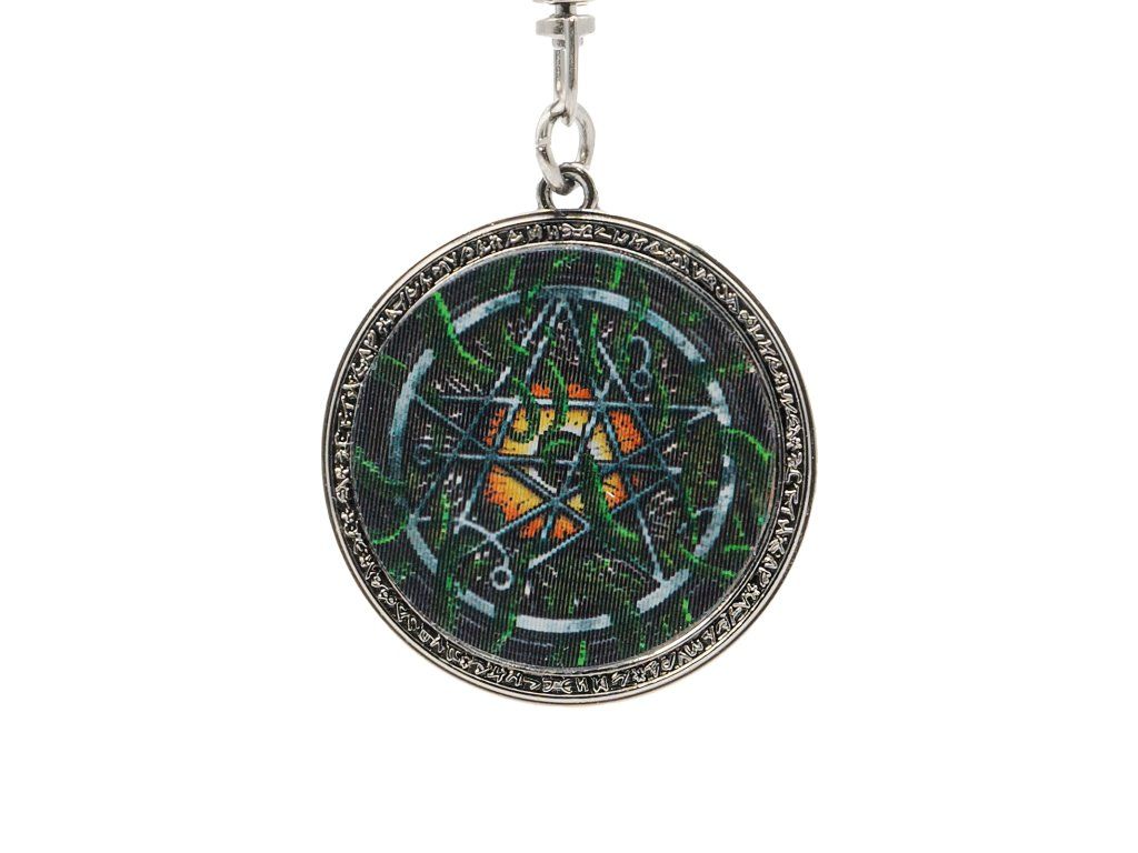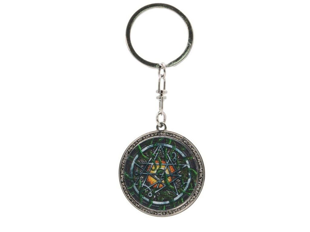 Jedinečná kovová klíčenka pro ctitele hororů Call of Cthulhu a díla H. P. Lovecrafta s lentikulární grafikou Necronomiconu.
