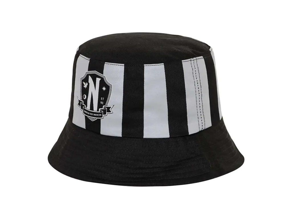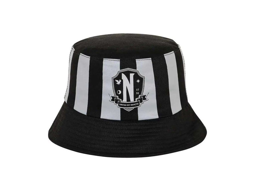 Klobouk rybářského střihu se znakem Nevermore Academy ze seriálu Wednesday od Netflixu - klobouk, který bude fanouškům slušet! Vhodné pro obvod hlavy 55 cm.