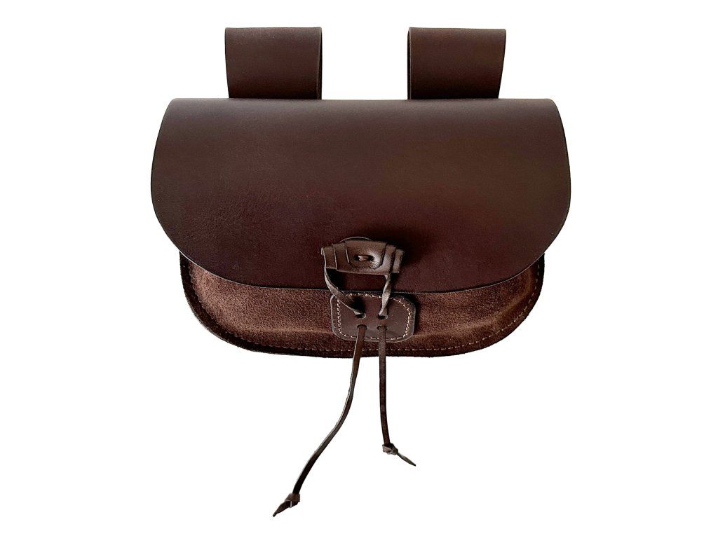 Doplň svůj historický kostým o stylový a praktický kousek! Tahle kožená taštice vychází z dobových předloh a skvěle se hodí na reenactment, LARP, historické festivaly i tematické akce. Nosí se zavěšená na opasku pomocí dvou pevných kožených poutek, takže ti bude při pohybu dobře držet a nebude překážet. Uložíš do ní mince, kostky, klíče nebo další drobnosti, které chceš mít vždy po ruce! Vyrobená je z kombinace hrubé kůže a štípenky, což jí dodává autentický vzhled i dlouhou životnost. Zapínání přední sklopy a následně zavazování typu měšec přináší výhodu dvojité ochrany. Šikovné prsty zlodějů tě pak můžou zajímat o něco méně. Vyber si svou variantu – Černá je univerzální a výrazná. Hnědá je prostě klasika inspirovaná přírodními tóny. Černo-červená je výrazná kombinace, která z tebe udělá nepřehlédnutelnou postavu na každé bitvě i hostině! Rozměry taštice jsou 19 x 12 cm.