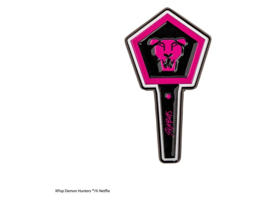 Toto je odznak pro licenci KPop Demon Hunters zobrazující světelnou hůlku Saja Boys. Vyroben společností Cinereplica, tento oficiálně licencovaný produkt je vyroben ze 100% zinkové slitiny.
