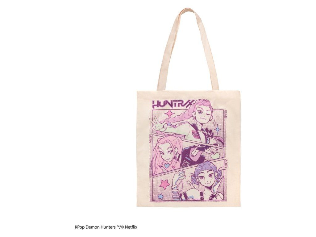 Toto je taška (tote) z licence KPop Demon Hunters s motivem „Bitva pro fanoušky“. Vyrobeno z 95 % polyesteru a 5 % bavlny. Rozměry: 42 x 38 x 0,5 cm (16.5\" x 15.0\" x 0.2\")