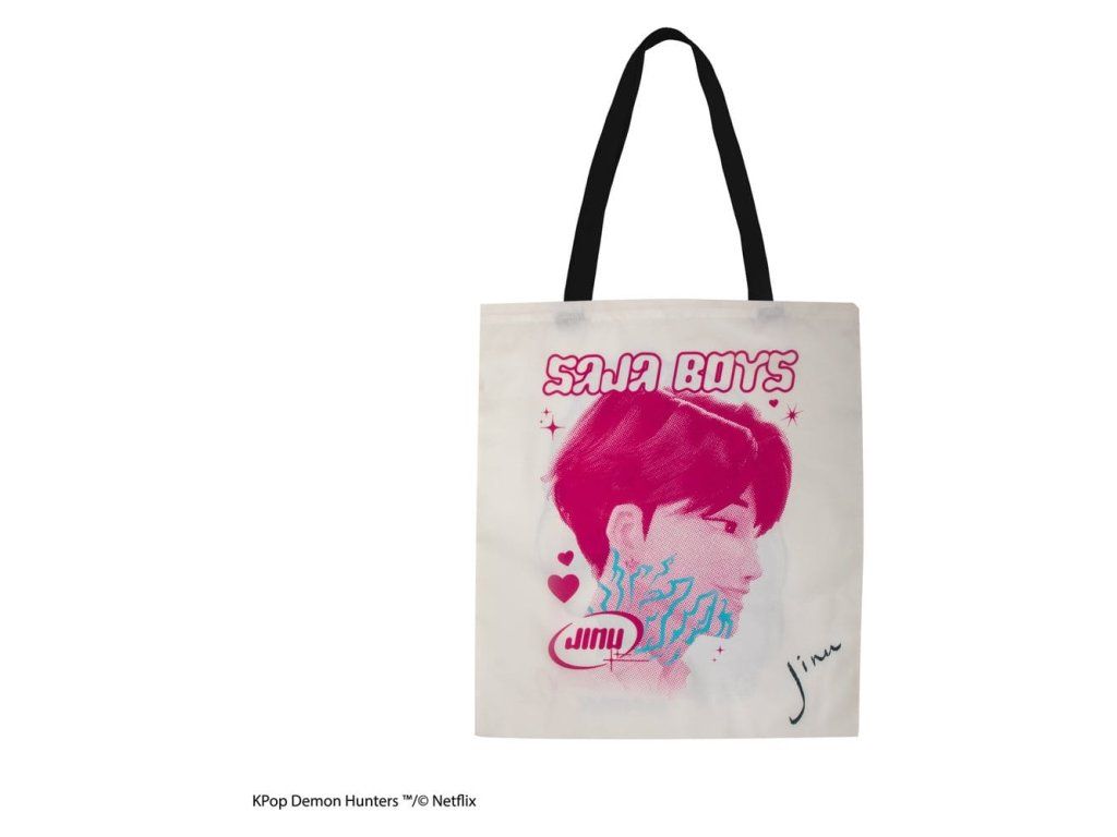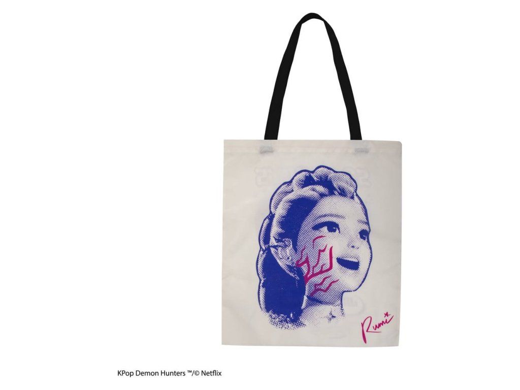 Toto je taška (tote) z licence KPop Demon Hunters s motivem Rumi & Jinu. Vyrobeno z 95 % polyesteru a 5 % bavlny. Rozměry: 42 x 38 x 0.5 cm (16.5" x 15.0" x 0.2")