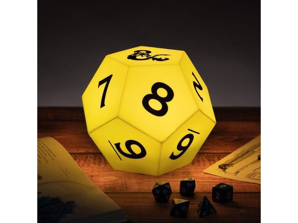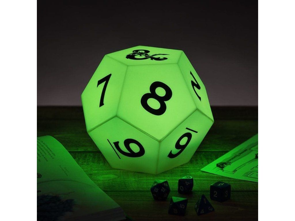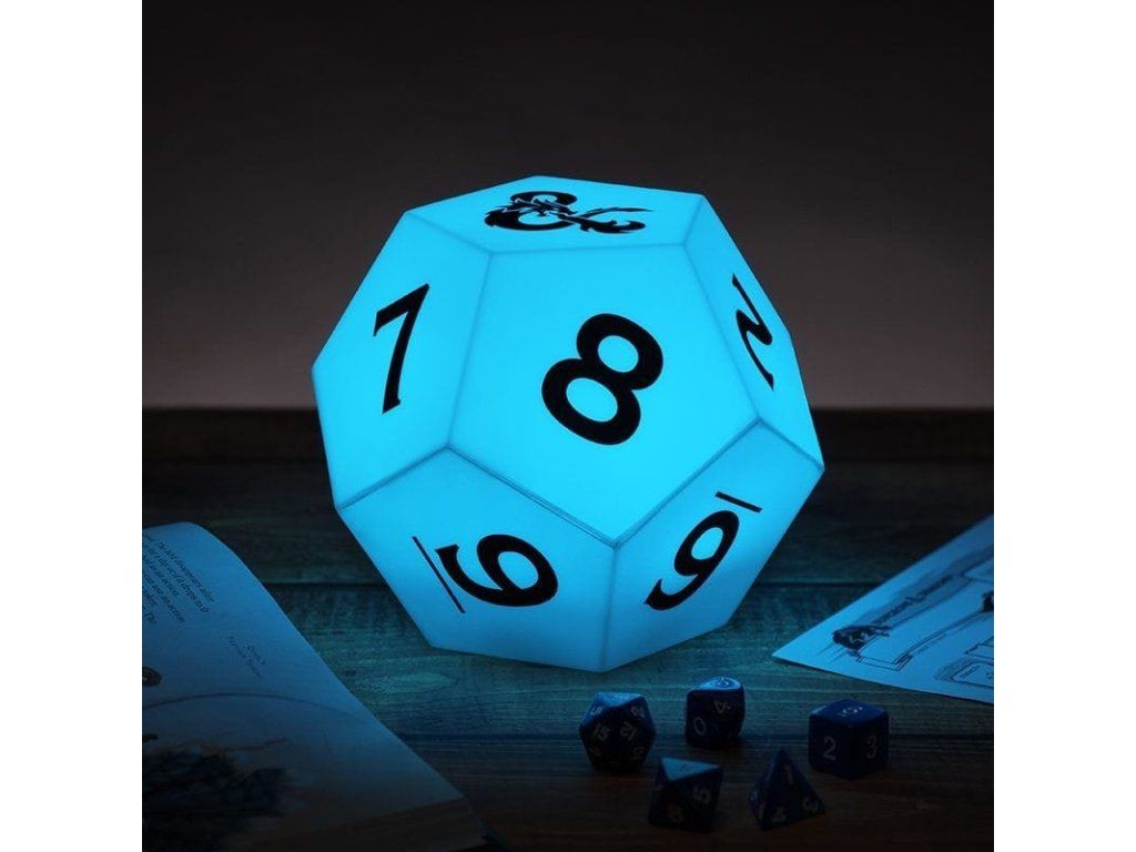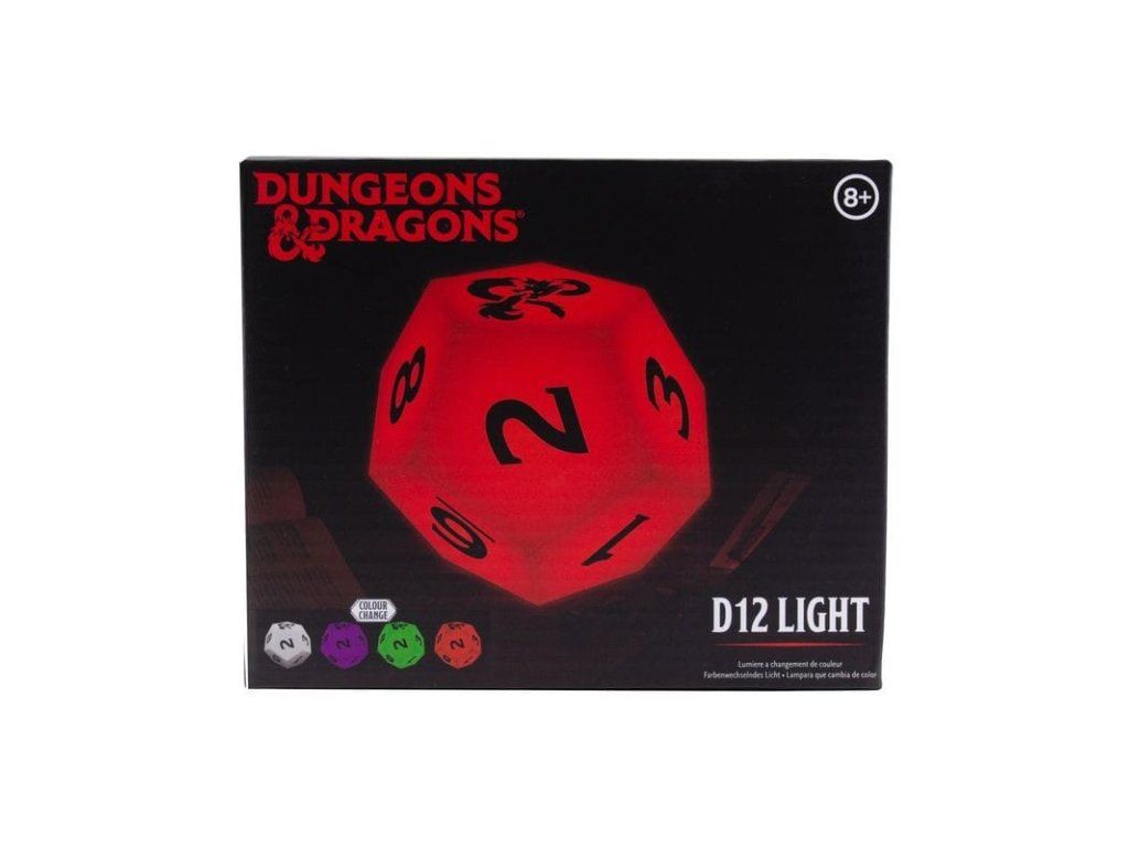 Lampa v podobě kostky D12 pro světově oblíbenou hru na hrdiny Dungeons and Dragons se hodí nejen pro vaše herní seance! Lampa mění barvy mezi fialovou, modrou, zelenou, žlutou a červenou. Užijte si při svých dobrodružstvích tu správnou magickou atmosféru. Skvělý dárek pro hráče RPG a správné geeky! Napájeno za pomoci 2 ks baterií AAA (nejsou součástí balení). Lampičku tak můžete umístit, kam se vám zlíbí, a snadno si ji vezmete s sebou, ať už máte herní session kdekoli.