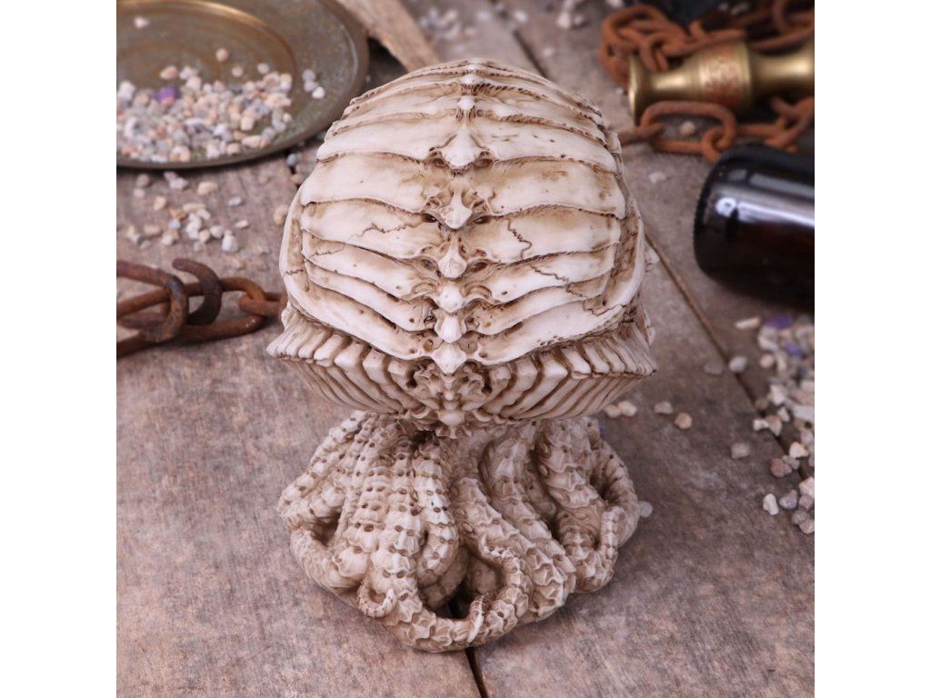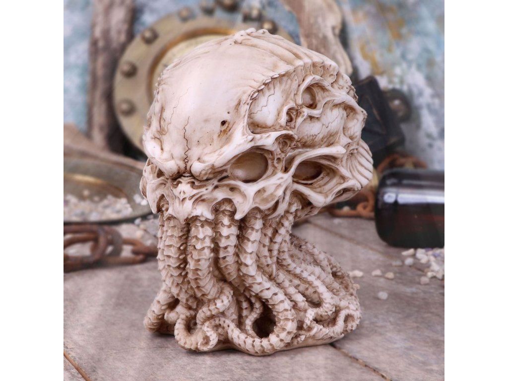 Ne každý se může pochlubit trofejí a relikvií v podbě lebky prastarého božstva! Milovníci hororů H. P. Lovecrafta Call of Cthulhu i fanoušci gotiky jistě ocení jedinečný doplněk domácnosti v podobě detailní lebky, jejímž autorem je známý fantasy a hororový tvůrce James Ryman Skvělá rekvizita pro hry na hrdiny, LARP či divadlo!
