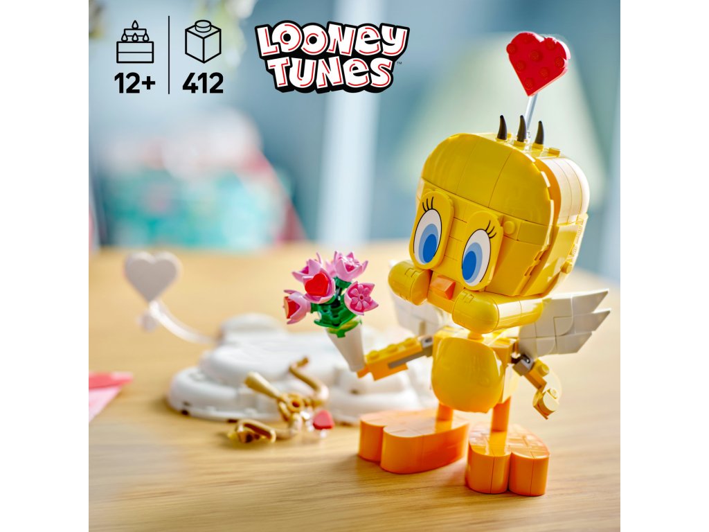 Nastylizujte Tweetyho jako Amorka – umístěte ho na oblak s lukem a šípem. Nebo Tweetymu dejte kytici květin a umístěte nad jeho hlavu srdce, abyste ukázali jeho romantickou stránku. Figurka se pyšní řadou pohyblivých detailů, jako je Tweetyho hlava, křídla, ocas a nohy. Nezapomeňte na poutavé doplňky a vytvořte výstavní kousek, který si každý zamiluje. Tato stavebnice LEGO představuje parádní valentýnský dárek pro děti od 12 let. Poslouží také jako skvělý dárek k narozeninám a zvláštním příležitostem nebo jako dáreček pro každého, kdo miluje Looney Tunes a nostalgické dárky.