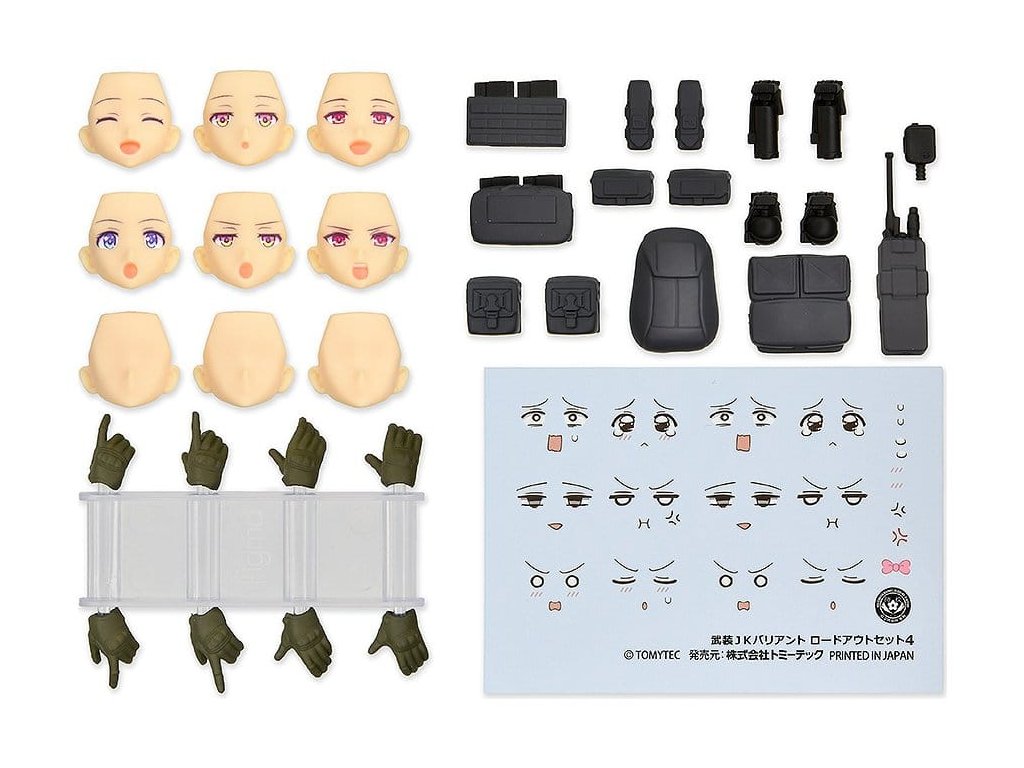 Představujeme volitelnou sadu dílů pro varianty Ozbrojené JK ze série vojenských dívek na střední škole 'Little Armory'. Tato nová 'Sada vybavení 4' má černé městské barevné schéma. Obsah sady: - Kazetový postroj a držáky na zásobníky s pláty - 2 typy (pro munici velkého kalibru), batohy - 2 typy- 2 x Pouzdra na kulomety, 2 pouzdra na brokovnice, 1 pouzdro na radio a ruční transceiver- 2 x Držáky na oslnění a ruční granáty, 2 x pouzdra na turnikety- 8 x Taktické rukavice pro figma.- 2 x Typy obličejových plátků pro každou variantu Ozbrojené JK D2, E2 a F2, 3 prázdné obličejové plátky- Obličejové značky na vodní skluzavce*Použijte pryžové lepidlo k upevnění vybavení, jak je třeba. Některé díly nelze kombinovat kvůli nekompatibilním tvarům a pozicím.