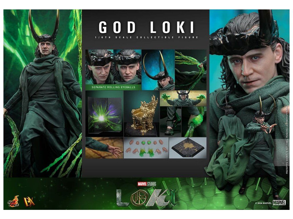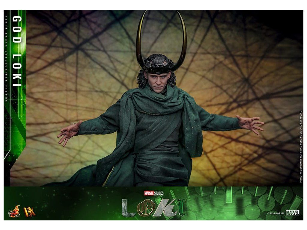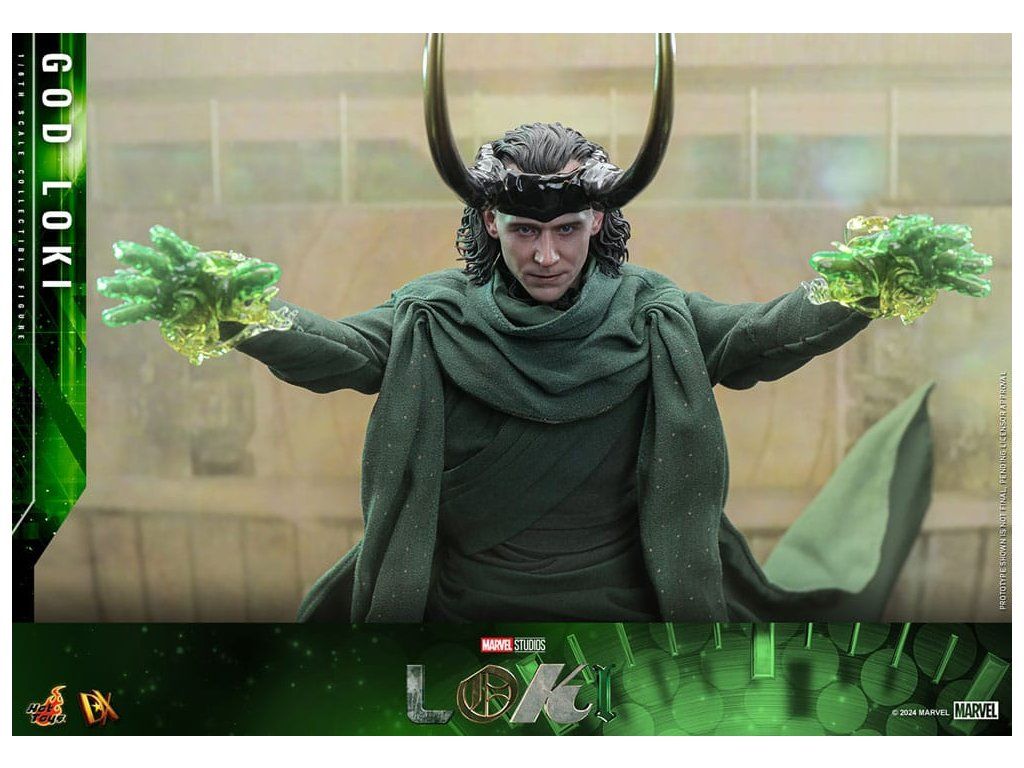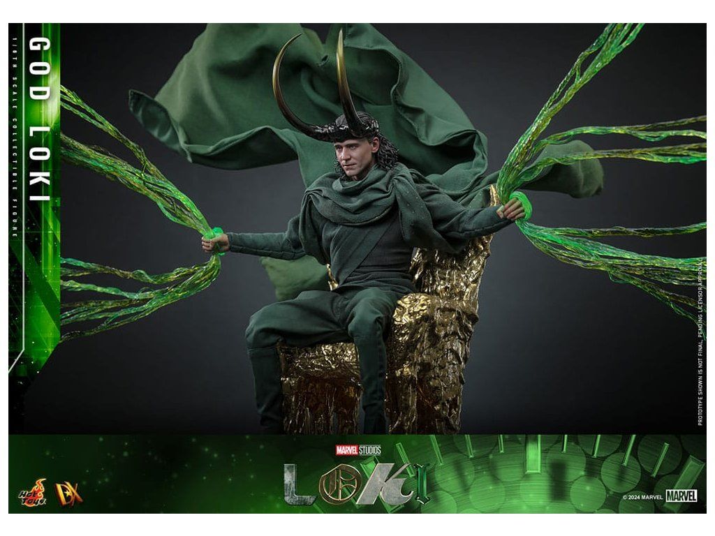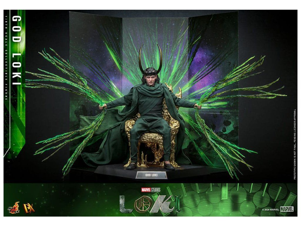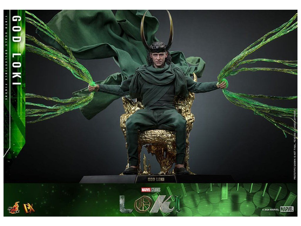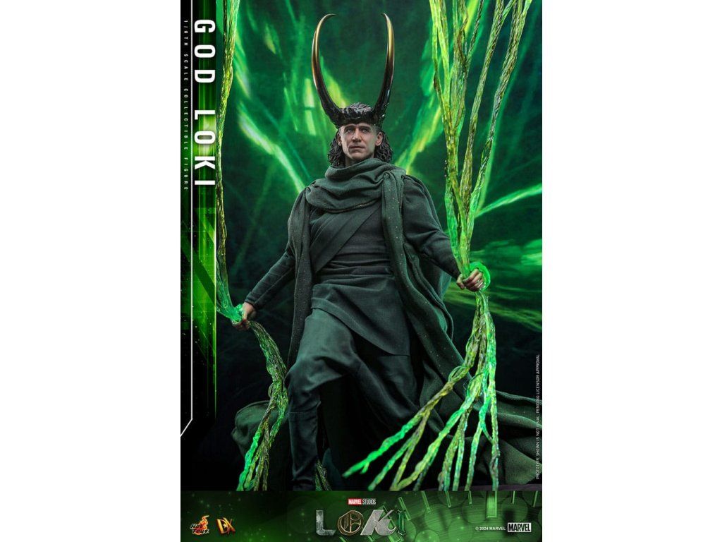 Ve finále 2. série Loki způsobí zásadní změnu, když zničí časový tkací stav a zachrání všechny rozvětvené časové osy. Proměniv se v živý časový tkací stav pro posvátnou časovou osu, Loki se stává zcela novým bohem a nyní je nedílnou součástí stability celého multivesmíru. S pečlivým zpracováním detailů představuje sběratelská figurka God Loki v měřítku 1/6, založená na hraném seriálu Loki (2. série), Lokiho nejnovější vzhled a jeho silnou přítomnost. Od věrného kostýmu po propracované modelování jeho rysů – každý aspekt této šestinkové akční figurky byl pečlivě vytvořen tak, aby odrážel jeho povýšený statut a odpovědnosti, které nyní nese. Mistrovsky zpracovaná podle ztvárnění Toma Hiddlestona jako God Loki ve finále, figurka obsahuje nově vyvinutou hlavu s odděleně otočnými očními bulvami. Kostým z látky je precizně ušitý tak, aby odpovídal Lokiho filmovému vzhledu, což zajišťuje věrné a vizuálně působivé ztvárnění. Jeho ikonická rohatá přilba je magneticky připevnitelná a doplňuje autentický vzhled. Dále figurka obsahuje trůn, efekty časové osy, efekty rukou, tematické pozadí a podstavec pro vystavení, které rozšiřují možnosti prezentace a umožňují kreativní pózování. Nová figurka God Loki od Hot Toys je ideální způsob, jak vyjádřit své fanouškovství Marvelu.