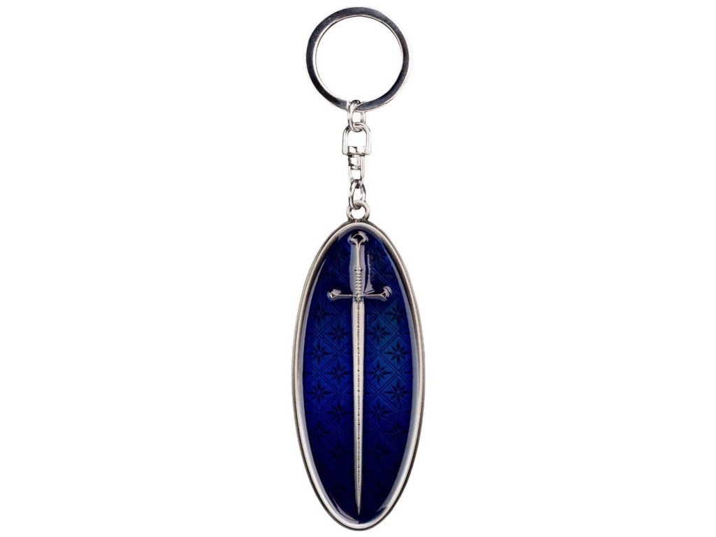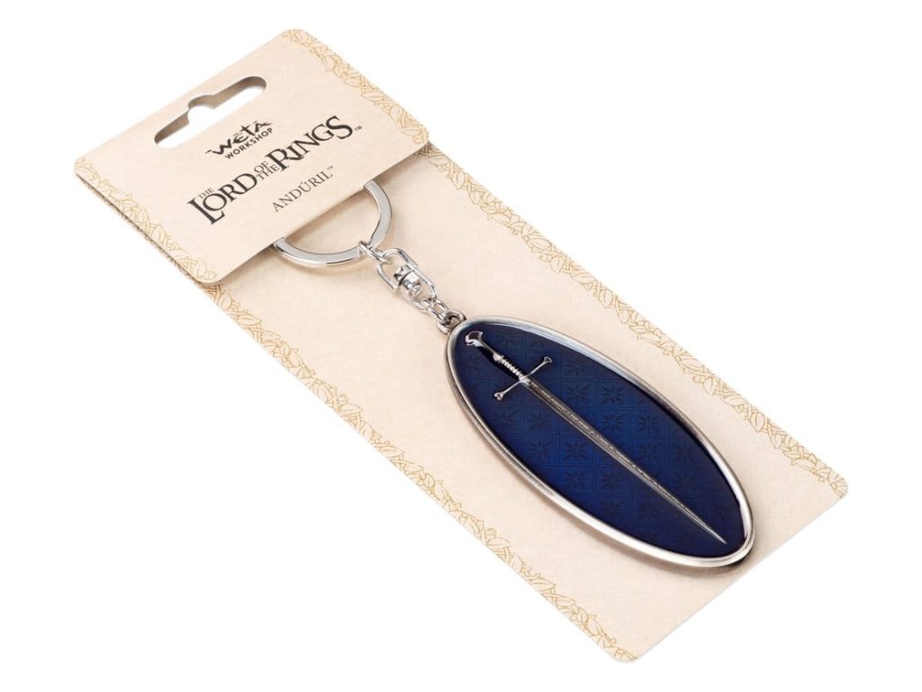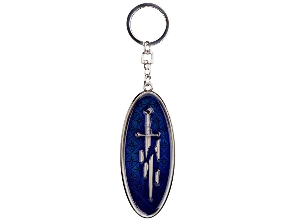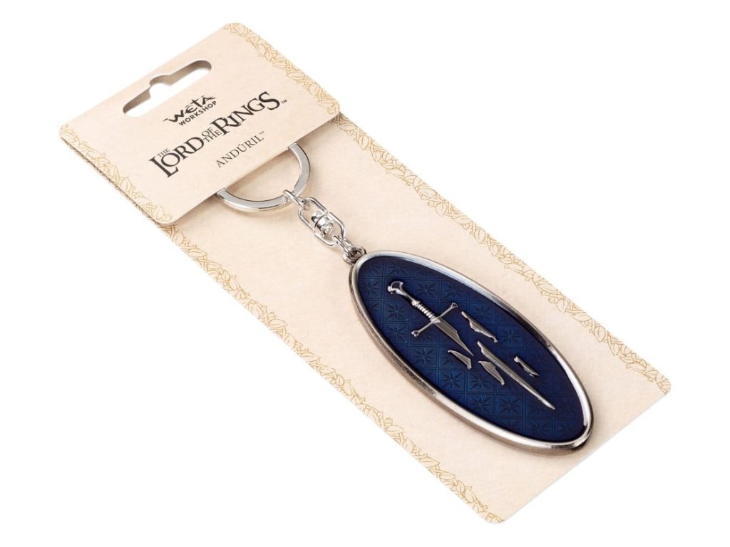 Jednou roztříštěný, nyní překován, tento meč nese v sobě tíhu věků a naději království - jeho legenda přetrvává jako světlo uprostřed stínů. Držte v ruce moc nejlegendárnějšího meče Středozemě. Tento nádherný oboustranný design zobrazuje rozbité úlomky Narsilu na jedné straně a překovaný Anduril, plamen Západu, na straně druhé - jako vzpomínku na trvalé dědictví meče, který změnil osudy mnoha lidí. Ideální pro fanoušky Pána Prstenů. Tento přívěsek na klíče je víc než jen suvenýr - je to symbol naděje, odolnosti a odvahy vykročit novým směrem. Udržujte své klíče bezpečné a svůj duch inspirovaný, zatímco s sebou nosíte tento ikonický artefakt Středozemě! Rozměry: 4 cm x 9,5 cm x 0,5 cm.