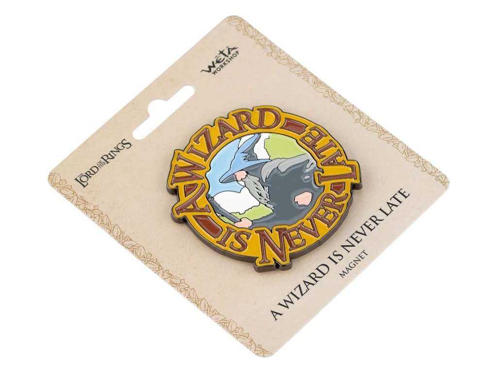Věta naplněná magií, sloužící jak jako ospravedlnění, tak jako hluboká pravda. Je to stejnou měrou hluboká moudrost kouzelníka a nevinný rozpustilost hobita.Přidejte špetku magie Středozemě do vaší kuchyně, kanceláře nebo na jiný magnetický povrch a nechte tuto hlubokou moudrost inspirovat vás každý den. Vylepšete svou sbírku pokladů ze Středozemě tímto okouzlujícím suvenýrem a oceňujte trochu legrace ve svém světě pokaždé, když sáhnete pro lednicí.Ať už jste zapálený fanoušek Středozemě, nebo oceníte kouzlo malebné fantastické estetiky, tento emalový magnet vás jistě potěší.- Prezentuje nekonečnou moudrost oblíbených slov Gandalfa "Kouzelník nikdy není pozdě!".- Vytvořený z odolných, vysoce kvalitních materiálů stejnými oceněnými umělci, kteří stojí za uznávanými sběratelskými předměty Weta Workshop.- Přineste špetku Středozemě do svého domova, ideální pro lednice, tabule nebo jakýkoliv kovový povrch, spojení funkčnosti s fantazií.Rozměry: 2,64" x 2,64" x 0,16" (Š x V x H) 6,7cm x 6,7cm x 0,4cm.