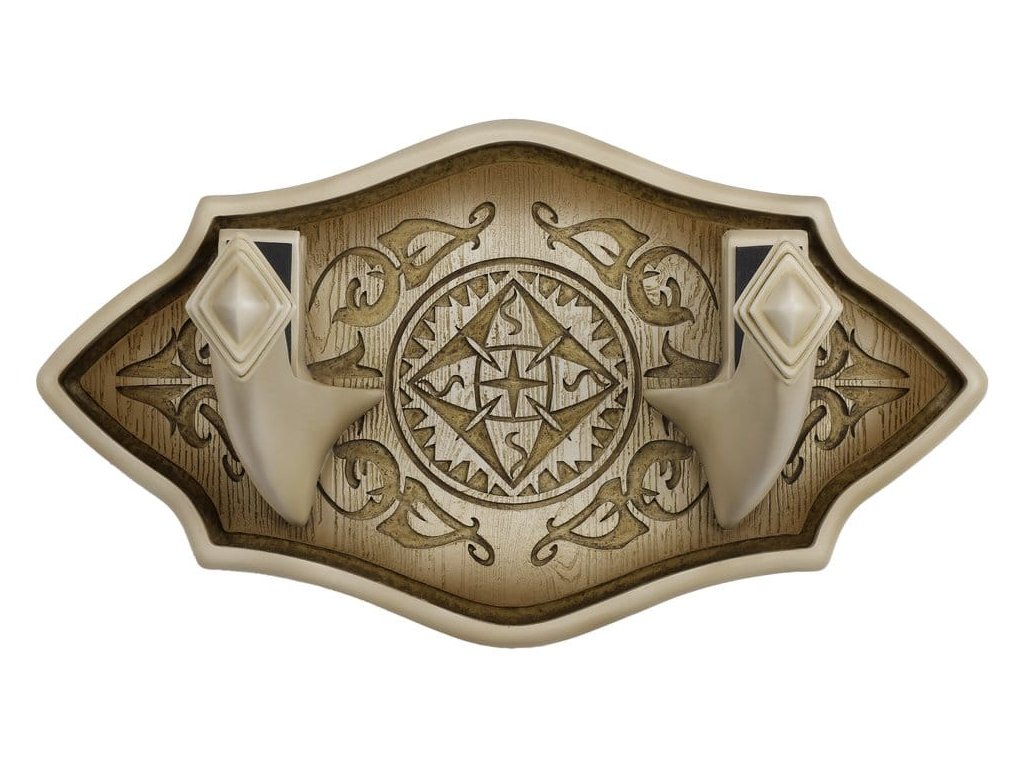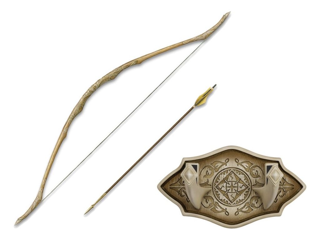 Tato replika luku Legolase ™ z Lothlorienu, jak je vidět ve filmech Pán prstenů ™, zachycuje krásu a řemeslnou dovednost elfské zbraně, kterou mu darovala Galadriela ™. Je vyrobena ze výztužné polyresiny se složitým vyřezáváním elfských listů a přesným zabarvením a je dodávána s replikou šípu o délce 38 palců a stěnným displejem z politonu, na kterém je znak Legolasovy rodiny. Každý luk obsahuje certifikát pravosti, což ho činí nezbytným pro sběratele. Detaily: Celková délka: 96,52 cm.