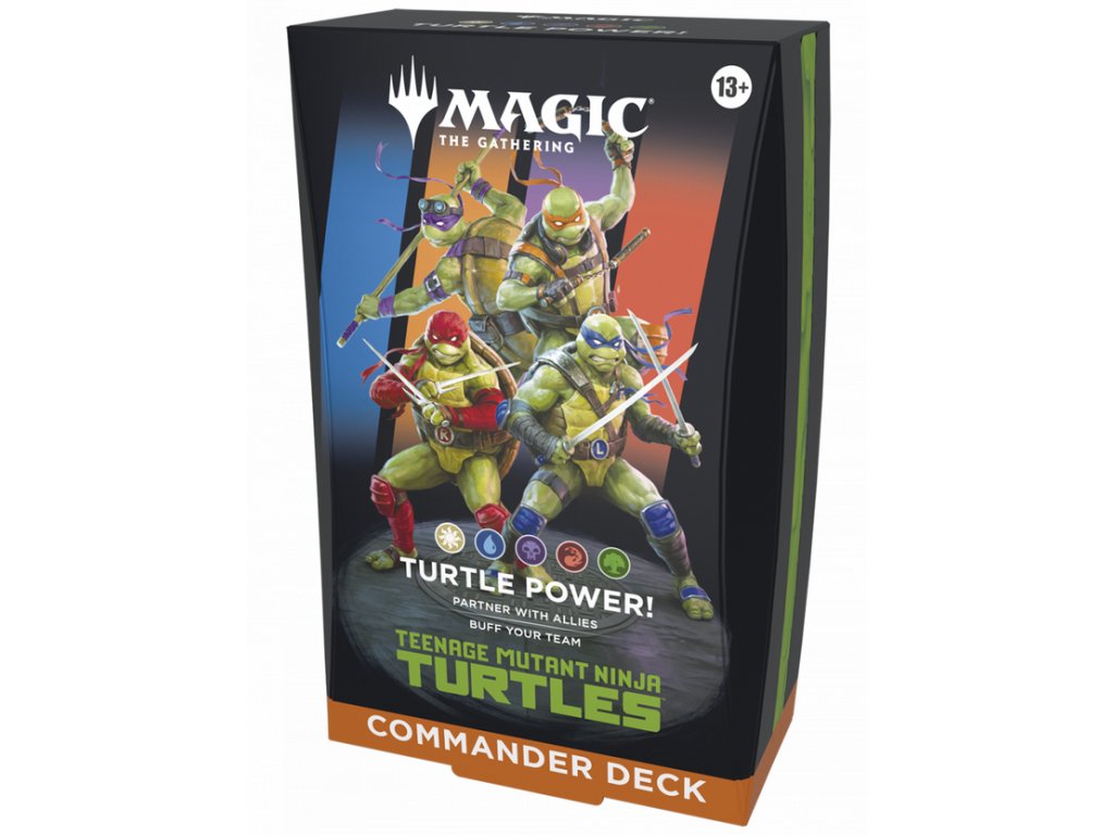 Commander balíček Magic: The Gathering – Teenage Mutant Ninja Turtles: Turtle Power je tematický předpřipravený deck určený pro populární multiplayer formát Commander. Tento balíček vznikl jako crossover mezi karetní hrou Magic: The Gathering a světem Teenage Mutant Ninja Turtles, takže obsahuje karty inspirované postavami jako Leonardo, Michelangelo, Donatello a Raphael, stejně jako prostředím a motivy z jejich dobrodružství. Deck je připravený k okamžitému hraní přímo po otevření balení a nabízí synergii karet navrženou kolem týmové spolupráce a bojových schopností želvích ninja hrdinů.