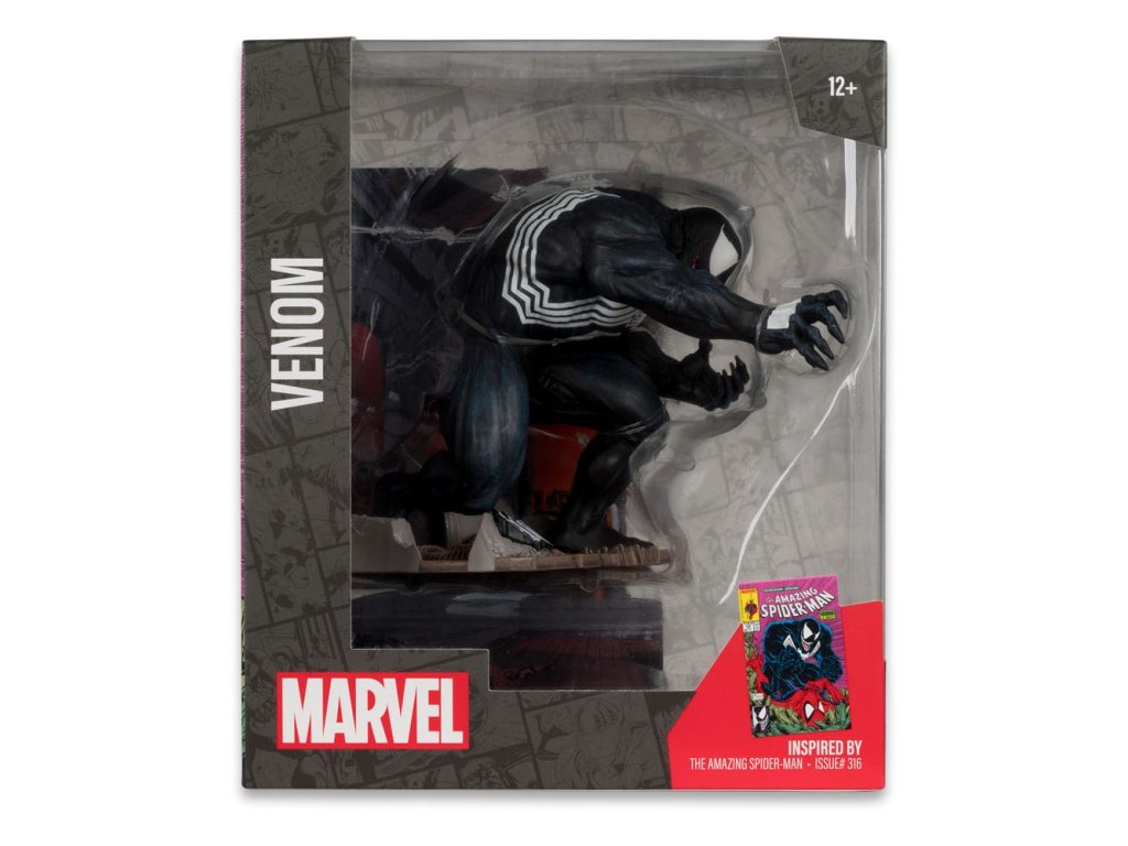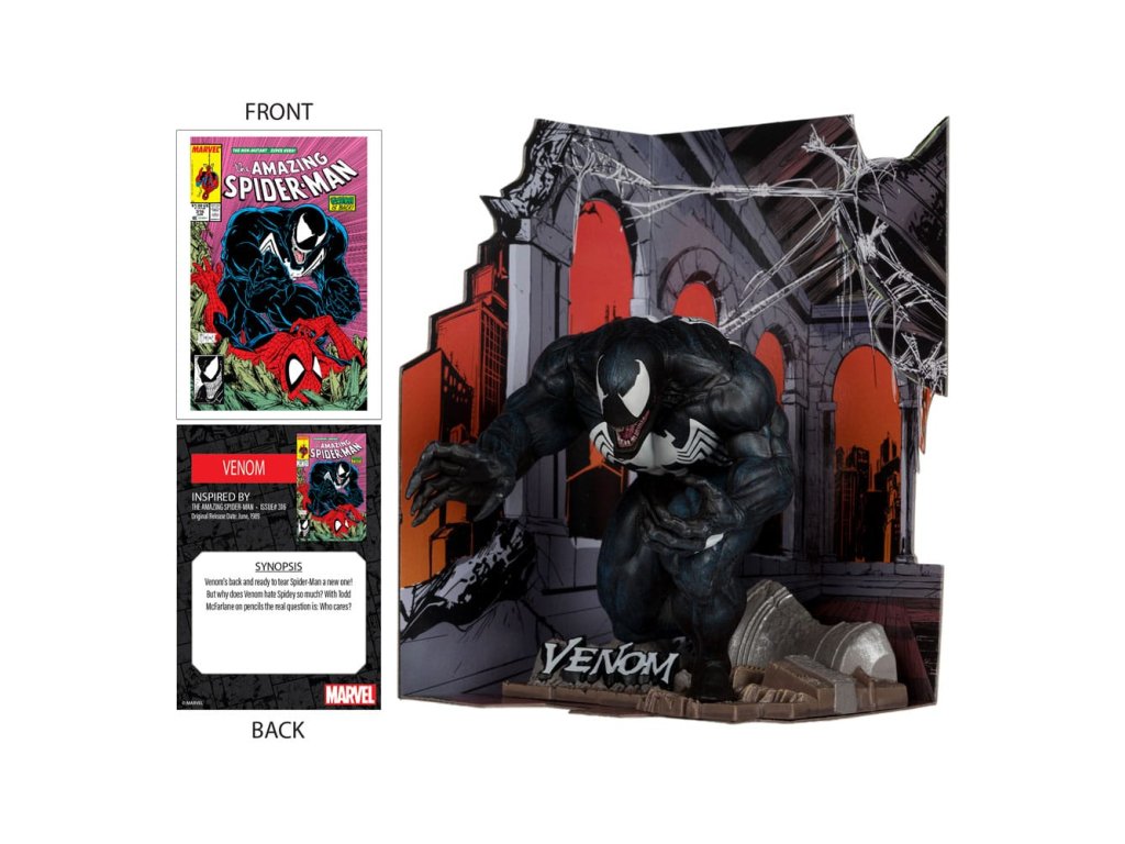 Venom se vrátil a je připraven udělat Spider-Manovi zle! Ale proč Venom tak nenávidí Spideyho? S Toddem McFarlanem u tužek je skutečnou otázkou: Kdo se stará? - Inspirováno vydáním Amazing Spider-Man číslo #316 - Kolekciová figurka v měřítku 1:10 s prostředím a pozadím scény - Součástí je umělecká karta s kresbou postavy na přední straně a stručným popisem příběhu z komiksu