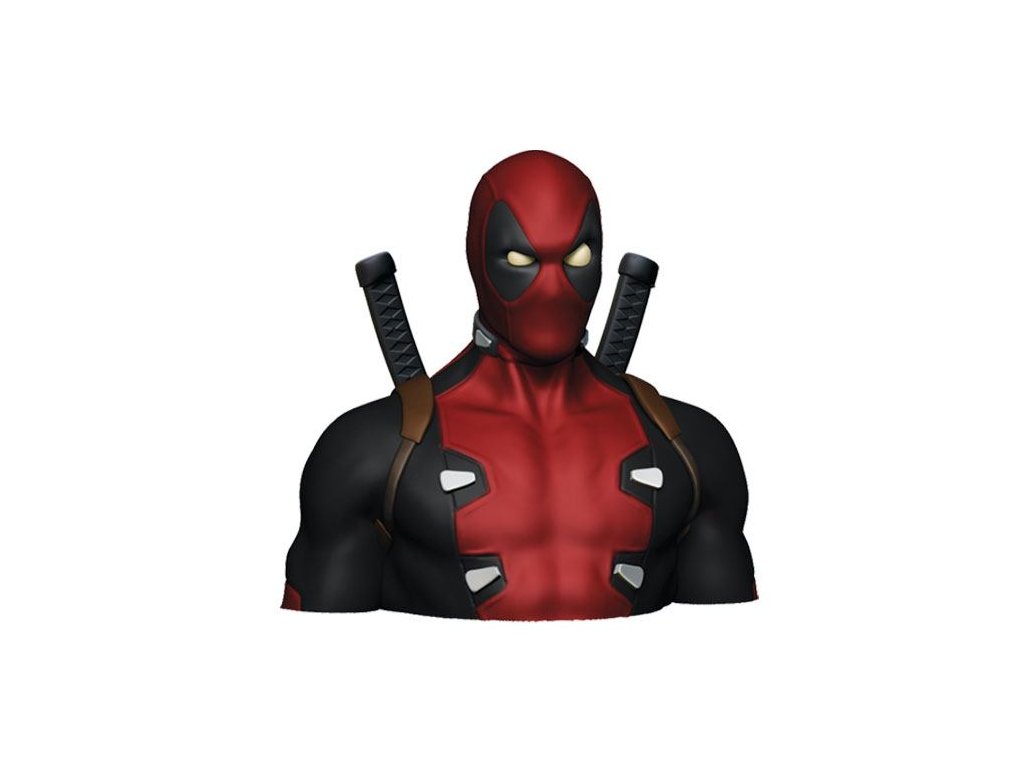 Dejte Deadpoolovi dohlížet na vaše úspory! Tato pokladnička měří přibližně 20 cm na výšku.