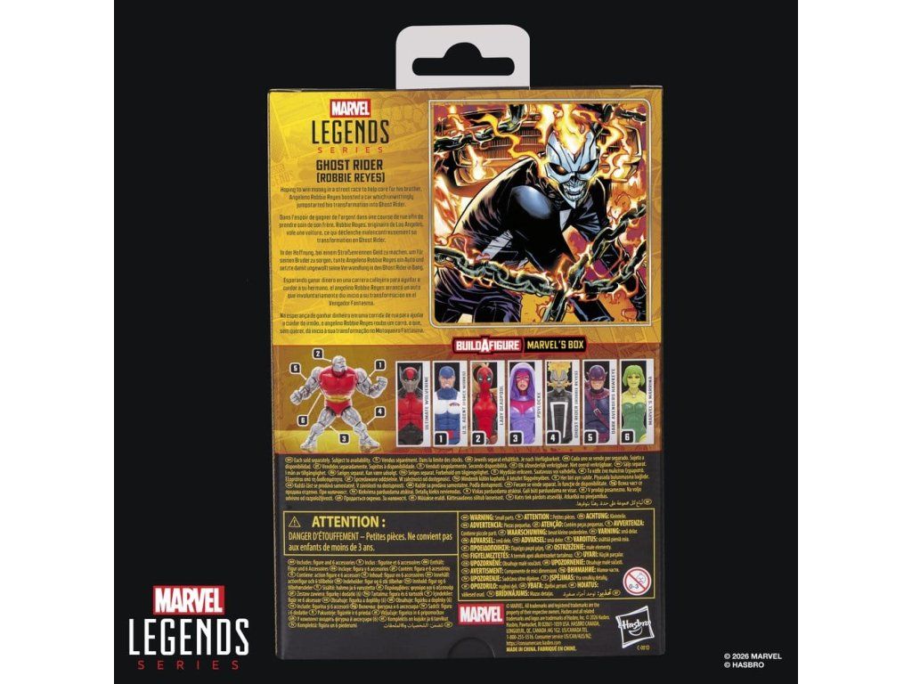 Přiveďte do své sbírky vzrušení a úžas ze světa Marvel s figurkou Hasbro Marvel Legends Ghost Rider (Robbie Reyes)! Tato sběratelská figurka v měřítku 6 palců (15 cm) je pečlivě propracovaná, aby vypadala jako postava z komiksů All-New Ghost Rider a Avengers. Akční figurka Ghost Rider (Robbie Reyes) je plně artikulovaná s prémiovým provedením a pohyblivou hlavou, pažemi a nohama. Sada obsahuje 4 doplňky včetně páčidla, kladiva s hrotem, efektu hořícího řetězu a jednoho dílu pro sestavení figurky Marvel's Box (Build-A-Figure).