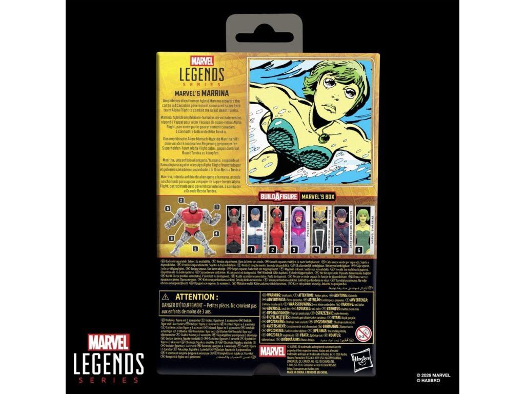 Přineste vzrušení a úžas vesmíru Marvel do své sbírky s figurkou Hasbro Marvel Legends Marvel's Marrina! Tato sběratelská figurka v měřítku 15 cm (6 palců) je propracovaná tak, aby vypadala jako postava z komiksů Alpha Flight. Akční figurka Marvel's Marrina je plně artikulovaná s prémiovým provedením a pohyblivou hlavou, pažemi a nohama. Sada obsahuje 3 doplňky včetně 2 náhradních rukou a 1 dílu Build-A-Figure (Marvel's Box). Dokončete další figurku sestavením pomocí akčních figurek Marvel Legends: U.S. Agent (Force Works), Lady Deadpool, Psylocke, Dark Avengers Hawkeye a Ghost Rider (Robbie Reyes). (Každá figurka se prodává samostatně. Dostupnost se může lišit.) 6palcové (15 cm) měřítko akčních figurek Hasbro Marvel je ideální pro pózování a vystavování ve sbírkách fanoušků. Oživte na své poličce scény inspirované komiksy Marvel s akčními figurkami Marvel Legends a sběratelskými předměty Marvel.