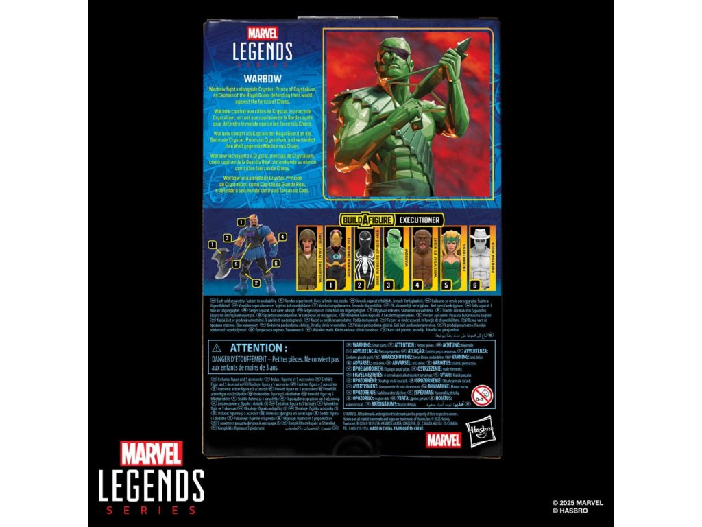Přineste vzrušení a kouzlo vesmíru Marvel do své sbírky s figurkou Hasbro Marvel Legends Warbow ze Ságy o Crystaru! Tato sběratelská figurek velká 6 palců je detailně zpracována tak, aby vypadala jako postava z Marvelových komiksů Saga of Crystar. Akční figurek Warbow je plně artikulovaný s prémiovým designem a pohyblivou hlavou, pažemi a nohami. Sada akčních figurek Marvel obsahuje 3 doplňky a 2 kusy postavy Executioner Build-A-Figure, včetně 2 alternativních rukou a kuše. Doplňte postavu dalšími akčními figurkami Marvel Legends - Spider-Man z temných Avengers, Iron Man (Mark 72), Werewolf By Night, Enchantress a Phantom Rider. (Každý se prodává samostatně. Podléhá dostupnosti.) Šestipalcový měřítko akčních figurek Hasbro Marvel je skvělé pro jejich pózování a vystavování ve sbírkách fanoušků. Představte si scény inspirované komiksy Marvel na své polici s akčními figurkami Marvel Legends a sběratelskými předměty Marvel.