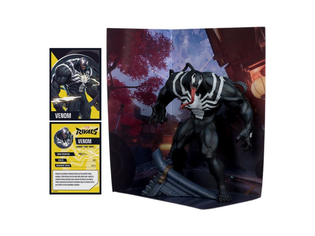 Využívaje svého symbiotem vylepšeného těla jako dokonalou živou zbraň, Eddie Brock a jeho mimozemský spojenec jsou stále připraveni rozpoutat nelítostné útoky na každého, koho považuje za nepřítele. Ti, kteří jsou chyceni do chapadel Venoma, nemají na výběr, než se poddat tomuto nenasytnému dravci. - Inspirováno Marvel Rivals - sběratelské v měřítku 1:6 se základnou prostředí a scénou na pozadí - stojí přibližně 24 cm vysoký - obsahuje komiks Marvel Rivals vydání #1 - obsahuje sběratelskou uměleckou kartu s obrázkem postavy - sbírejte všechny sběratelské předměty McFarlane Toys Marvel a Marvel Rivals